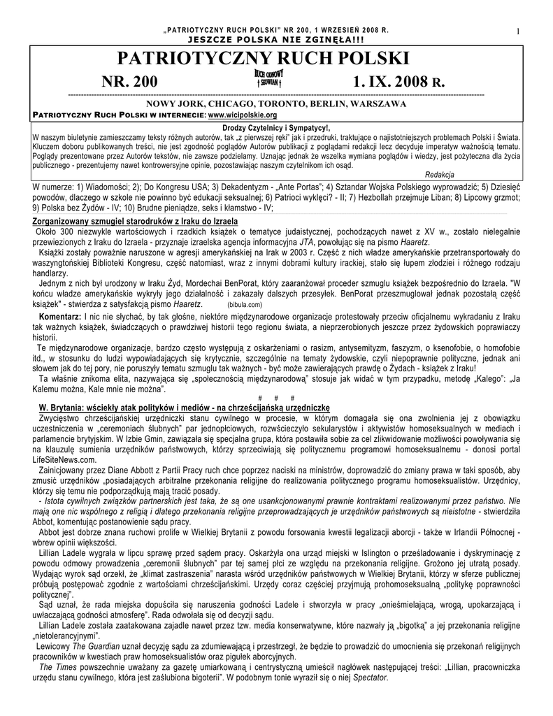 patriotyczny ruch polski nr. 200 1. ix. 2008 r.