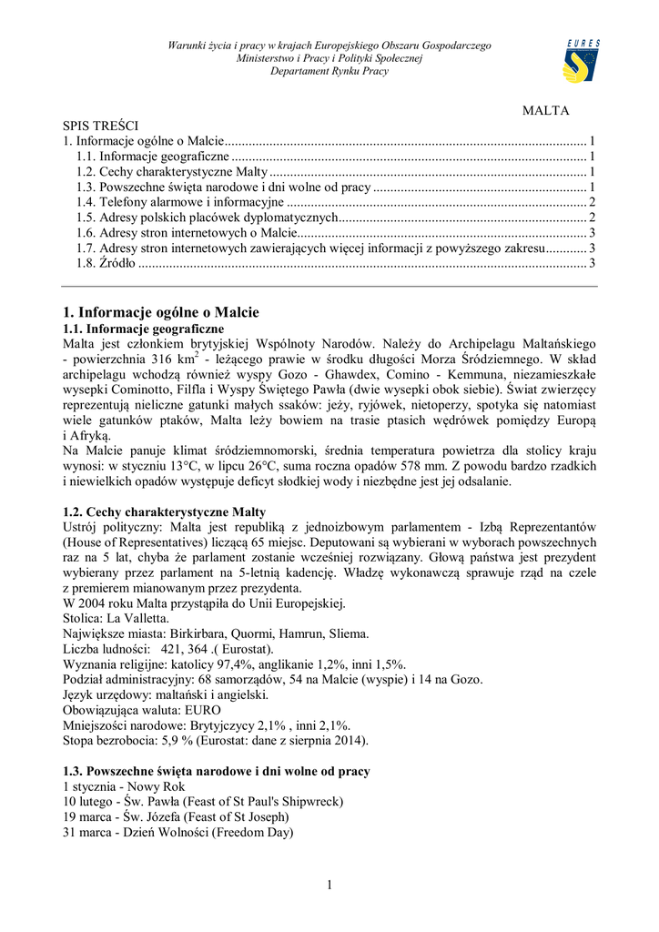 1.6. Adresy stron internetowych o Malcie.................................................................................... 3