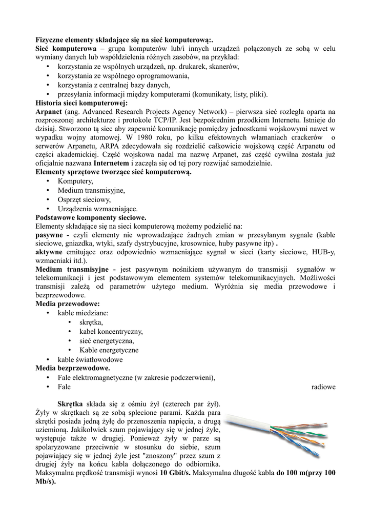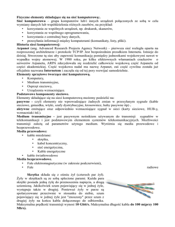 Fizyczne elementy składające się na sieć komputerową:.