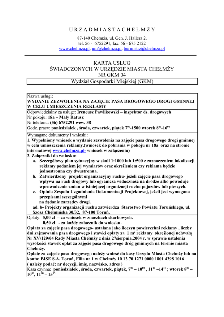 GKM04-Wydanie zezwolenia na zajęcie pasa drogowego drogi