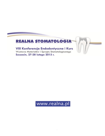 VIII KONFERENCJA ENDODONTYCZNA - REALNA STOMATOLOGIA - KURS I KONFERENCJA NAUKOWA 27-28 LUTEGO 2015 r. - SZCZECIN www.realna.pl KIEROWNIK NAUKOWY: prof. dr hab. n. med. Mariusz Lipski DATA I MIEJSCE OBRAD: Budynek Rektoratu PUM, ul. Rybacka 1, Szczecin 27-28 lutego 2015 r. Organizatorzy: Zakład Stomatologii Zachowawczej Przedklinicznej i Endodoncji Przedklinicznej PUM w Szczecinie oraz Andersz-Realna Stomatologia ul. Okólna 49; 71-742 Szczecin, www.realna.pl, www.andersz.com tel. 501 652 932 , 502 652 932 VIII KONFERENCJA ENDODONTYCZNA - REALNA STOMATOLOGIA - KURS I KONFERENCJA NAUKOWA 27-28 LUTEGO 2015 r. - SZCZECIN www.realna.pl Realna Stomatologia Konferencja Naukowa „Postępy w stomatologii – zdrowie publiczne” STRESZCZENIA PRAC KOMITET NAUKOWY: prof. dr hab. n. med. Mariusz Lipski dr hab. n. med. Alicja Nowicka Budynek Rektoratu PUM, ul. Rybacka 1, Szczecin 28 lutego 2015 r. ORGANIZATORZY: Zakład Stomatologii Zachowawczej Przedklinicznej i Endodoncji Przedklinicznej PUM w Szczecinie Realna Stomatologia - ANDERSZ www.realna.pl VIII KONFERENCJA ENDODONTYCZNA - REALNA STOMATOLOGIA - KURS I KONFERENCJA NAUKOWA 27-28 LUTEGO 2015 r. - SZCZECIN www.realna.pl Mariusz Lipski1, Damian Lichota2, Alicja Nowicka2 1 Zakład Stomatologii Zachowawczej Przedklinicznej i Endodoncji Przedklinicznej PUM w Szczecinie 2 Katedra i Zakład Stomatologii Zachowawczej i Endodoncji PUM w Szczecinie Powtórne leczenie endodontyczne zęba z szerokim otworem wierzchołkowym. Opis przypadku W pracy opisano powtórne leczenie endodontyczne zęba siecznego szczęki, które wykonano z powodu z powodu dolegliwości bólowych występujących podczas nagryzania. W związku z szerokim otworem wierzchołkowym odcinek przyszczytowy kanału zamknięto materiałem o dużej biozgodności (Biodentine), a część środkową i koronową gutaperką z użyciem uszczelniacza. W wyniku zastosowanego leczenia dolegliwości bólowe ustąpiły. Ewa Marek, Mariusz Lipski Zakład Stomatologii Zachowawczej Przedklinicznej i Endodoncji Przedklinicznej PUM w Szczecinie Zastosowanie tomografii komputerowej w diagnostyce resorpcji korzenia zęba Tomografia komputerowa jest coraz częściej wykorzystywana w diagnozowaniu trudnych sytuacji klinicznych. W pracy przedstawiono możliwości zastosowania CBCT w diagnozowaniu resorpcji korzeni zębów. Dwa opisane przypadki dotyczyły resorpcji korzeni zębów siecznych centralnych szczęki, jeden przypadek dotyczył resorpcji korzenia zęba siecznego bocznego szczęki. Wykazano dużą podatność tomografii wolumetrycznej w diagnozowaniu resorpcji powikłanych perforacją korzenia. Maciej Jabłoński, Mateusz Granat, Wiktor Ostrowski, Maciej Piasta Studenckie Koło Naukowe przy Zakładzie Stomatologii Zachowawczej Przedklinicznej i Endodoncji Przedklinicznej PUM w Szczecinie Opiekunowie Koła: prof. dr hab. Mariusz Lipski, dr n. med. Katarzyna Kot Ocena szczelności materiałów MTA-T i Tech Biosealer Root End zastosowanych do wstecznego wypełnienia kanału korzeniowego. Badania in vitro VIII KONFERENCJA ENDODONTYCZNA - REALNA STOMATOLOGIA - KURS I KONFERENCJA NAUKOWA 27-28 LUTEGO 2015 r. - SZCZECIN www.realna.pl Wojciech Eliasz Klinika Stomatologii Zachowawczej i Periodontologii UM im. K. Marcinkowskiego w Poznaniu Uporczywe dolegliwości bólowe po leczeniu endodontycznym – opis przypadku We współczesnej endodoncji dobrze wyjaśnione i udokumentowane jest występowanie bólu przed leczeniem endodontycznym, w jego trakcie czy krótko po nim. Niewiele wiadomo o uporczywych dolegliwościach utrzymujących się powyżej 6 miesięcy, określanych w literaturze jako „uporczywy ból po leczeniu endodontycznym” [ang. „persistent pain after root canal treatment”], a postępowanie w takich przypadkach jest często wyzwaniem dla endodontów. Celem pracy jest prezentacja przypadku ponownego leczenia endodontycznego zęba 11 przeprowadzonego z powodu objawów bólowych utrzymujących się 7 miesięcy po wypełnieniu kanału, mimo podjęcia próby ponownej interwencji. Materiał stanowi przypadek przyśrodkowego prawego zęba siecznego szczęki. Ze skierowania oraz wpisów historii choroby stwierdzono, że pierwotne leczenie przeprowadzono w maju 2014r. W kolejnej poradni (6 miesięcy później) stwierdzono niedopełnienie kanału korzeniowego. Ze względu na objawy utrzymujące się od pierwotnego zabiegu, usunięto gutaperkę oraz założono i wymieniano (trzykrotnie w ciągu 1 miesiąca) opatrunek na bazie wodorotlenku wapnia i preparatu antybiotykowo-steroidowego. Dolegliwości nie ulegały jednak zmniejszeniu. W Klinice Stomatologii Zachowawczej i Periodontologii UMP przeprowadzono jednoseansowe leczenie endodontyczne zgodnie z wytycznymi Europejskiego Towarzystwa Endodontycznego. Pacjenta skierowano do lekarza prowadzącego i poinformowano o konieczności kontroli. W okresie jednego tygodnia po wypełnieniu kanału dolegliwości znacznie się zmniejszyły, natomiast ciągu kolejnych siedmiu dni ustąpiły niemal całkowicie. Pacjent jest pod stałą kontrolą stomatologa prowadzącego i nie zgłasza występowania objawów patologicznych ze strony zęba. Kinga Kaczor1, Agnieszka Gerula2, Alicja Nowicka³ 1 Studium Doktoranckie Wydziału Lekarsko-Stomatologicznego PUM w Szczecinie 2 Studenckie Towarzystwo Naukowe prze Katedrze i Zakładzie Stomatologii Zachowawczej i Endodoncji PUM w Szczecinie ³Katedra i Zakład Stomatologii Zachowawczej i Endodoncji PUM w Szczecinie Metody obrazowania adaptacji brzeżnej wypełnień kompozytowych - przegląd piśmiennictwa Jednym z elementów mających wpływ na powodzenie leczenia zachowawczego jest prawidłowa szczelność brzeżna wypełnień, która zmniejsza ryzyko powstania próchnicy wtórnej, chroni miazgę zęba oraz korzystnie wpływa na długotrwałą estetykę. Celem pracy była ocena i porównanie metod służących do obrazowania adaptacji brzeżnej. Za pomocą przygotowanych wzorów wyszukiwania przeszukano 4 bazy danych zawierające