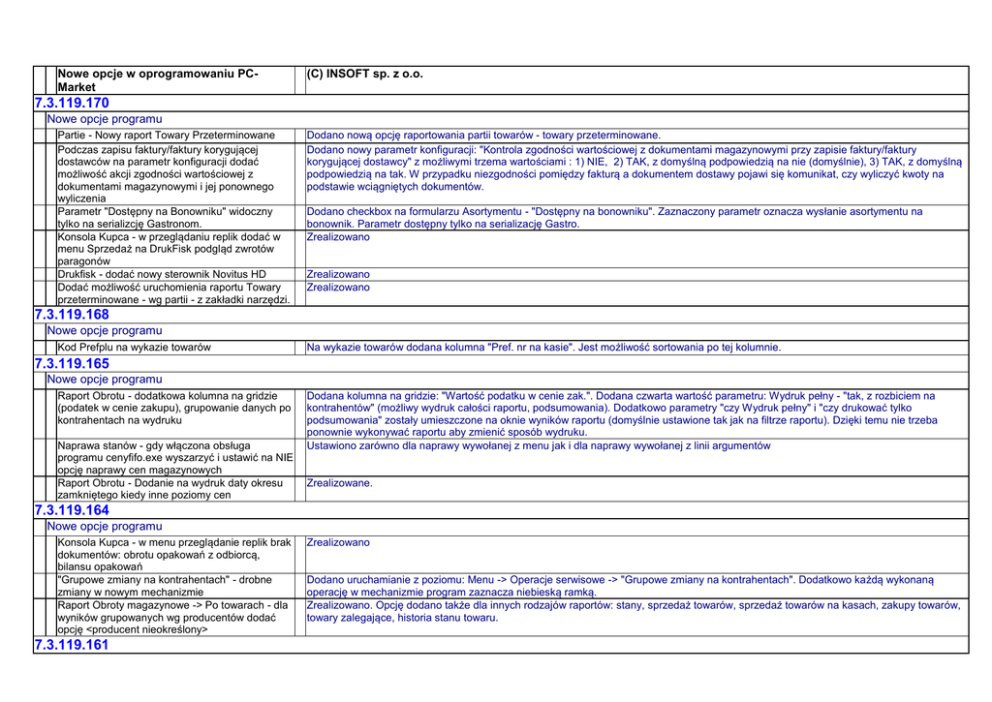 Nowe opcje w oprogramowaniu PC- Market (C) INSOFT sp. z o.o.