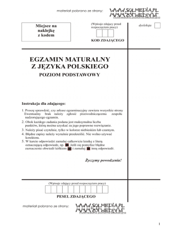 1 Część I – rozumienie pisanego tekstu Przeczytaj uważnie tekst, a następnie wykonaj zadania umieszczone pod nim. Odpowiadaj tylko na podstawie tekstu i tylko własnymi słowami – chyba, że w zadaniu polecono inaczej. Udzielaj tylu odpowiedzi, o ile jesteś proszona/y. W zadaniach zamkniętych wybierz tylko jedną z zaproponowanych odpowiedzi. Pojęcie roli społecznej 1. Badając stosunki społeczne, zauważamy, że kiedy jednostka jest partnerem w stosunkach społecznych z pewną liczbą innych jednostek, stosunki te są zwykle zintegrowane. Niektóre ze stosunków społecznych jednostki nie mają ze sobą żadnego związku, podczas gdy inne są nawet w konflikcie. Aby szereg stosunków społecznych został zintegrowany, niezbędna jest współpraca nie tylko między jednostką każdym z jej partnerów, lecz również sprawy między tymi partnerami. Kiedy taka współpraca istnieje i stosunki społeczne między jednostką a niektórymi z jej partnerów są zintegrowane, ogół tych stosunków tworzy system społeczny. Taki system społeczny zakłada przede wszystkim, że sama jednostka gospodarz, gospodyni, gość, ojciec, dziecko, uczeń w szkole, kupiec, przedsiębiorca przemysłowy, profesor, dowódca na wojnie -jest rozpoznawana i dodatnio wartościowana przez wszystkich partnerów, którzy mają z nią pod danym względem współpracować - przez gości, gospodarzy oraz innych gości, przez dzieci, dorosłych członków rodziny, nauczycieli, sprzedawców, kupujących, robotników, studentów czy żołnierzy. Wszyscy ci współpracujący ze sobą partnerzy tworzą to, co będziemy nazywali kręgiem społecznym, którego ośrodkiem jest jednostka. Od niej z kolei oczekuje się, że będzie pozytywnie wartościować swoich partnerów. 2. Ta osoba ma określone obowiązki, których wypełniania oczekują od niej uczestnicy jej kręgu społecznego. Nie może ona jednak właściwie wypełniać swych obowiązków, jeżeli oni nie wypełniają w stosunku do niej swoich (...). W rezultacie ludzie składający się na jej krąg społeczny podejmują wspólnie za-dania robienia dla niej wszystkiego, czego wymagają normy społeczne. (...) Można powiedzieć, że przyznają jej oni określone prawa i bronią ich, stosując pozytywne lub negatywne sankcje w stosunku do postępowania każdego członka kręgu. (...) 3. Możliwość uczestnictwa tej samej jednostki w wielu różnych stosunkach społecznych z różnymi ludźmi przyciągnęła uwagę tych socjologów i psychologów społecznych, którzy odnosili się krytycznie do starej doktryny, według której wyjaśnienia życia społecznego jednostki należy szukać w „naturze ludzkiej", interakcja zaś jednostek ludzkich jest zależna od ich rzeczywistej istoty jako bytów biologicznych, biopsychicznych lub psychicznych. Ponieważ koncepcje dotyczące tej istoty uległy zmianie i prawdziwości żadnej z nich nie można było dowieść, były to niewątpliwie koncepcje metafizyczne, a nie naukowe. 4. Studia nad rzeczywistymi stosunkami społecznymi doprowadziły niektórych myślicieli XX wieku do wniosku, że interakcja między jednostkami ludzkimi zależy nie od tego, czym te jednostki „są w rzeczywistości", lecz - mówiąc najprościej - od tego, za co uważają ją same siebie oraz innych ludzi. Wniosek ten pozbawił naukowego sensu metafizyczne spory na temat „prawdziwej istoty" człowieka. Jako znak rozpoznawczy tego nowego podejścia zaczęto stosować termin „rola", pochodzący z teatru. W przypadku roli teatralnej aktor zjawia się i zachowuje wobec innych w określony sposób, zaś inni aktorzy robią to samo w stosunku do niego, jak gdyby byli osobami wymyślonymi przez dramaturgów. Od czasów Szekspira dramaturdzy i aktorzy dostrzegali zawsze analogię między teatrem i światem społecznym nie tylko w tym oczywistym sensie, że sztuka teatralna naśladuje w jakimś stopniu życie społeczne, lecz również w tym sensie, że ono samo jest podobne do teatru. (...) 2 5. Przede wszystkim każda rola teatralna obejmuje interakcję pomiędzy grającym rolę aktorem oraz innymi aktorami. Nikt nie może sam zagrać roli Hamleta. Musi być krąg innych aktorów i aktorek, grających rolę Królowej, Króla, Horacja, Ofelii, Poloniusza i akceptujących go jako wykonawcę roli Hamleta. To samo stosuje się do każdej innej roli, wykonywanej przez aktora lub aktorkę, która bierze udział w sztuce. Chociaż Hamlet jest osobą centralną i najważniejszą, której rola jest główną rolą dramatu, niemniej jednak w jakimś momencie przedstawienia każda z mniej ważnych osób, zjawiających się na scenie, staje się, choćby na chwilę tylko, pomniejszym ośrodkiem uwagi. 6. Jeżeli badając role społeczne, weźmiemy pod uwagę ten aspekt ról teatralnych, to w każdej roli społecznej odnajdziemy krąg społeczny, w którym jednostka tę rolę wykonuje, tj. zespól osób działających, które akceptują ją i z nią współpracują. Jeżeli takiego kręgu nie ma, jednostka nie może wykonywać swej roli, chociaż może wyobrażać sobie, że to robi, na podobieństwo obdarzonego bujną wyobraźnią dziecka, identyfikującego się w marzeniach z osobą, jaką chciałoby być, lub chorego umysłowo, wierzącego, że jest jakimś wielkim bohaterem. 7. Drugie ważne podobieństwo wypływa stąd, że skoro dramat jest utworem literackim, stworzonym przez autora w tym celu, aby był odtwarzany gestem i słowem na scenie, każda rola teatralna podlega wzorom kulturowym; każdy odtwarzający ją aktor musi najpierw nauczyć się wzoru z dzieła autora i później się go trzymać. Osoba aktora grającego Hamleta, jego powierzchowność, symbole pozycji księcia duńskiego, cały jego charakter, mają być zgodne z pewnymi sprawdzianami. Cokolwiek mówi on i robi jako Hamlet, musi odpowiadać określonym normom. Taka zgodność stanowi jego obowiązek jako artysty, gdyż bez niej nie byłoby możliwe estetycznie właściwe pr