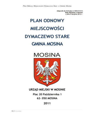 Plan Odnowy Miejscowości Dymaczewo Stare w Gminie Mosina Załącznik do Uchwały nr XXX/213/12 Rady Miejskiej w Mosinie z dnia 9 sierpnia 2012 r. PLAN ODNOWY MIEJSCOWOŚCI DYMACZEWO STARE GMINA MOSINA URZĄD MIEJSKI W MOSINIE Plac 20 Października 1 62- 050 MOSINA 2011 1|Strona Plan Odnowy Miejscowości Dymaczewo Stare w Gminie Mosina Plan Rozwoju Miejscowości Dymaczewo Stare został opracowany przy współudziale: - Mieszkańców Sołectwa Dymaczewo Stare - Urzędu Miejskiego w Mosinie - Sołtysa Sołectwa Dymaczewo Stare - radnych Rady Miejskiej 2|Strona Plan Odnowy Miejscowości Dymaczewo Stare w Gminie Mosina SPIS TREŚCI WSTĘP ............................................................................................... 4 1. OBSZAR I CZAS REALIZACJI PLANU ROZWOJU MIEJSCOWOŚCI .......................... 6 2. ANALIZA ZASOBÓW SOŁECTWA ............................................................. 6 2.1. Położenie ................................................................................. 6 2.2. Środowisko przyrodnicze ............................................................... 7 2.2.1. Zagospodarowanie przestrzenne ................................................. 7 2.2.2. Gleby, wody, surowce mineralne ................................................. 8 2.2.3. Świat roślinny i zwierzęcy ......................................................... 10 2.3. Środowisko kulturowe, zabytki ...................................................... 10 2.4. Gospodarka ............................................................................ 12 2.4.1. Bezrobocie .......................................................................... 12 2.4.2. Rolnictwo ........................................................................... 13 2.4.3. Przedsiębiorstwa ................................................................... 15 2.5. Infrastruktura techniczna ............................................................. 15 2.5.1. Wodociągi i zaopatrzenie w wodę................................................... 15 2.5.2. Kanalizacja i gospodarka ściekowa .................................................. 15 2.5.3. Gospodarka odpadami stałymi ....................................................... 15 2.5.4. Gazyfikacja-zaopatrzenie w gaz.................................................... 16 2.5.5. Telefonizacja ........................................................................... 16 2.5.6. Drogownictwo i komunikacja ........................................................ 16 2.5.7. Sytuacja mieszkaniowa................................................................ 17 2.6. Infrastruktura społeczna .............................................................. 17 2.6.1. Placówki oświatowe i kulturalne..................................... 17 2.6.2. Infrastruktura i tereny sportowe .................................... 17 2.6.3. Ochrona zdrowia ....................................................... 17 2.6.4. Ochrona przeciwpożarowa ............................................ 17 2.6.5. Działające organizacje pozarządowe na terenie Sołectwa ....... 18 2.6.6. Noclegi i gastronomia ................................................. 18 2.7. Liczba ludności Sołectwa w kolejnych latach ...................................... 18 3. OCENA ZASOBÓW SOŁECTWA .......................................................... 18 4. DIAGNOZA AKTUALNEJ SYTUACJI SOŁECTWA - JACY JESTEŚMY? ................. 20 5. PODSUMOWANIE SYTUACJI ROZWOJOWEJ SOŁECTWA - ANALIZA SWOT ........ 21 6. WIZJA ROZWOJU WSI-NASZE SOŁECTWO ZA 10 LAT .............................. 22 7. WIZJA STANU DOCELOWEGO - JAKIE MA BYĆ SOŁECTWO ZA KILKA LAT? ....... 22 8. PLAN ROZWOJU MIEJSCOWOŚCI - NASZA MAŁA STRATEGIA ....................... 23 8.1. Specyfikacja celów rozwojowych ....................................................... 23 8.2. Opis projektów uwzględniających finansowanie w ramach SPO .................. 26 9. ARKUSZ PLANU KRÓTKOTERMINOWEGO .............................................. 27 10. ZGODNOŚĆ STRATEGII SOŁECTWA ZE STRATEGIĄ ROZWOJU GMINY...................28 11. WDRAŻANIE PLANU ROZWOJU MIEJSCOWOŚCI........................................ 29 12. MONITORING, OCENA, AKTUALIZACJA I KOMUNIKACJA SPOŁECZNA .............. 31 12.1. System monitorowania Planu ...................................................... 31 12.2. Sposoby oceny i aktualizacji Planu ............................................... 31 12.3. Public Relations Planu.............................................................. 31 13. SPIS TABEL .................................................................................... 34 3|Strona Plan Odnowy Miejscowości Dymaczewo Stare w Gminie Mosina WPROWADZENIE Uwarunkowania zdecentralizowany, Planu lokalny Odnowy charakter, Miejscowości obejmuje polegają na ograniczony tym, teren że ma on miejscowości i przygotowywany jest (przy udziale przedstawicieli gminy) z inicjatywy i przez mieszkańców. Specyfika planu polega na tym, że jest on ukierunkowany na zagadnienia cywilizacyjno-kulturowe, koncentruje się na prostych, lokalnych przedsięwzięciach, które prowadzić mają do poprawy standardu i jakości życia mieszkańców. Ma mniej progospodarczy, a bardziej pro-społeczny i pro-kulturowy charakter. I dzięki temu może stanowić doskonałe uzupełnienie strategii rozwoju całej gminy, która zazwyczaj koncentruje się na zagadnieniach infrastrukturalnych i gospodarczych. Celem planu jest podtrzymanie lub odtworzenie atrakcyjności wsi jako miejsca zamieszkania i zaplanowanie, oraz przeprowadzenie tego w sposób dostępny, oczekiwany i popierany oraz wykonalny dla lokalnej społeczności. Jest to szczególnie ważne w aktualnej sytuacji, gdy miasta oferują konkurencyjną alternatywę zamieszkania, a rolnictwo traci swą atrakcyjność jako źródło utrzymania, co prowadzi m.in. do migracji młodych ludzi, szczególnie tych lepiej wykształconych ze wsi do mia