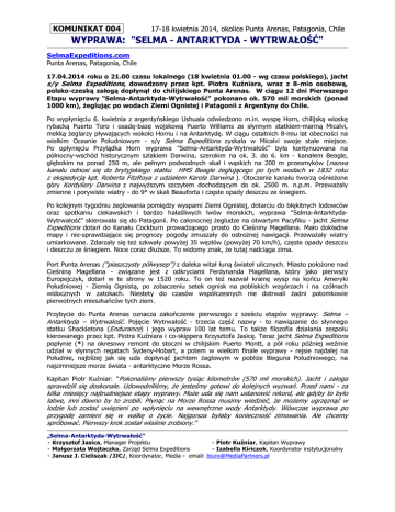 polsko-czeską załogą dopłynął do chilijskiego Punta Arenas. W ciągu 12 dni Pierwszego