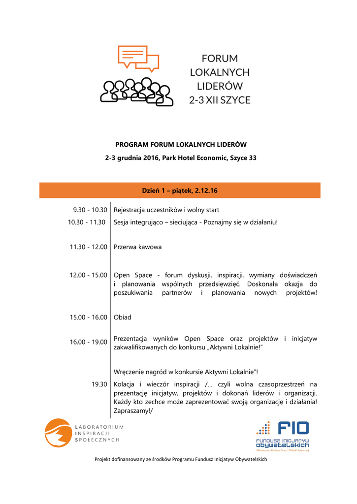PROGRAM FORUM LOKALNYCH LIDERÓW 2