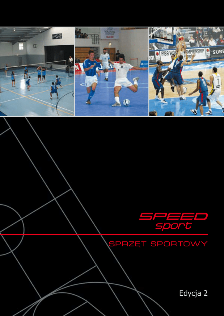 Koszykówka sprzęt sportowy 1 Edycja 2 spis treści Spis treści Zestaw ORLIK Piłka nożna Koszykówka Tablice wyników Siatkówka Piłka ręczna Floorball / hokej halowy Tenis stołowy Gimnastyka i rehabilitacja Lekkoatletyka Edukacja i dydaktyka Syntetyczne nawierzchnie sportowe 3 4-7 8 - 25 26 27 - 31 32 - 33 34 - 37 38 - 43 44 - 49 50 - 52 53 54 - 63 - certyfikat ISO - certyfikat bezpieczeństwa 2 Wszystkie ceny katalogowe są cenami brutto i obowiązują do końca 2009 r. lub do wyczerpania zapasów. Katalog zawiera informację handlową i nie może być uznawany za ofertę w rozumieniu art. 66 §1 Kodeksu Cywilnego. Zastrzegamy sobie możliwość wprowadzenia zmian w konstrukcji i kolorystyce wyrobów bez uprzedzenia. zestaw orlik 2012 „(…)Jesteśmy gotowi, a jest to efekt przygotowań dużej pracy studyjnej zespołu, który pracuje od wielu wielu miesięcy, jesteśmy gotowi do realizacji narodowego programu „Boisko w mojej gminie”. Chcemy, żeby przy okazji Euro 2012 i jest to realny program, chcemy wspólnie z samorządami terytorialnymi, organizacjami sportowymi i partnerami prywatnymi zrealizować właśnie ten program „Boisko w mojej gminie”. To oznacza boisko w każdej gminie. W każdej polskiej gminie. (…)” Fragment tekstu expose, premiera Donalda Tuska 1/ Słupki aluminiowe 1978,- zł Wymiary: 500 x 200 cm 1/ 2068,- zł Wymiary: 300 x 200 cm Bramka wolnostojąca z mocowaniem do podłoża. Konstrukcja: - front - profile aluminiowe 80 x 80 mm,lub 120 x 100 mm owalne anodowane, w kolorze srebrnym. - boki i dół - rurki stalowe, ocynkowane ogniowo. Bramka jest bardzo stabilna dzięki zastosowaniu systemu sztywnych narożników wsuwanych w poprzeczkę i słupki, dodatkowo usztywnionych poprzez przykręcenie do blachy mocującej boki bramki. Posiada certyfikat Polskiego Instytutu Sportu. Zestaw „Gęsia Szyja” 2138,- zł Popularny, bardzo wytrzymały zestaw do zabetonowania zgodny z programem ORLIK 2012 W skład zestawu wchodzi: Słup: wykonany ze stalowej rury o średnicy 114 mm, ocynkowany, 8 lat gwarancji antykorozyjnej. Tablica: stalowa, wymiary 135 x 90 cm, półkolista, cynkowana, malowana proszkowo, gwarancja antykorozyjna 3 lata. Obręcz: europejski rozstaw otworów (110 x 90 mm), wykonana z pręta stalowego o śr. 18 mm tylna blacha o grubości 5 mm, malowana proszkowo, dodatkowe wzmocnienie za pomocą stalowego kołnierza, w komplecie z siatką (12 zaczepów). Zestaw wytrzymuje obciążenie do 280 kg. zestaw ORLIK 2012 Bramka aluminiowa anodowana Konstrukcja: profil aluminiowy owalny 120 x 100 mm Naciąg: zewnętrzny śrubowy Regulacja wysokosci zawieszenia siatki: od 1,07 do 2,43 m, co umożliwia grę w siatkówkę, tenisa, badmintona. Komplet składa się z dwóch słupków (jeden z elementami napinającymi, drugi z napinaczem śrubowym siatki). Kolor: srebrny Mocowanie: w tulejach Przeznaczenie: na halę i na zewnątrz 3 sprzęt Chorągiewka sędziowska 30,- zł Materiał: rurka - tworzywo sztuczne, chorągiewka - poliester Kolor: żółto – czerwony (szachownica) Chorągiewka boiskowa 30,- zł Przeznaczenie: boisko Materiał: rurka - tworzywo sztuczne, podstawa metalowa ocynkowana, chorągiewka - poliester Rodzaj: uchylna, stała Wysokość: 150cm Kolor: żółty, czerwony Stała - 30 zł Uchylna - 35 zł Piłka nożna Chorągiewka stacjonarna 28,- zł 4 Przeznaczenie: boisko, hala Materiał: rurka - tworzywo sztuczne, podstawa gumowa, chorągiewka - poliester Wysokosć: 120 cm Kolor: żółty, czerwony Pachołek 6,zł 6 cm 14,zł 25 cm 37 cm 17,zł Przeznaczenie: do gier i zabaw ruchowych Materiał: tworzywo sztuczne Kolor: żółty, czerwony Pachołek z otworami 37 cm 18,- zł Przeznaczenie: treningowe Materiał: tworzywo sztuczne Kolor: żółty, czerwony cena nie obejmuje chorągiewki i rurki sprzęt Bramka stalowa HD Wymiary: 180 x 120 cm 1998,- zł Bramka wolnostojąca z mocowaniem do podłoża o konstrukcji anty-wandal. Konstrukcja: - front i dół bramki - profil stalowy o wymiarach 80 x 80 mm (grubość ścianki 3mm) - zamiast siatki są pionowe rurki stalowe Całość wykonana ze stali ocynkowanej. Posiada Certyfikat Polskiego Instytutu Sportu Gwarancja antykorozyjna na okres 6 lat. Bramka aluminiowa anodowana Wymiary: 500 x 200 cm 2068,- zł Wymiary: 300 x 200 cm 1880,- zł Bramka wolnostojąca z mocowaniem do podłoża. Konstrukcja: - front - profile aluminiowe 80 x 80 mm,lub 120 x 100 mm owalne anodowane, w kolorze srebrnym. - boki i dół - rurki stalowe, ocynkowane ogniowo. Bramka jest bardzo stabilna dzięki zastosowaniu systemu sztywnych narożników wsuwanych w poprzeczkę i słupki, dodatkowo usztywnionych poprzez przykręcenie do blachy mocującej boki bramki. Posiada certyfikat Polskiego Instytutu Sportu. Piłka nożna Wymiary: 120 x 80 cm 480,- zł Bramka wolnostojąca z mocowaniem do podłoża. Konstrukcja: - front i dół bramki - profile stalowe o wymiarach: 60 x 60 mm (grubość ścianki 3 mm) - boki - rurki stalowe Całość wykonana ze stali ocynkowanej. Bramka posiada gwarancję antykorozyjną na okres 6 lat. Posiada certyfikat Polskiego Instytutu Sportu. Wózek do proszkowego nanoszenia linii (wapno, kreda) 748,- zł Wyposażony w trzy kółka o szerokiej bieżni ułatwiającej jego prowadzenie na murawie boiska. Służy do wyznaczania linii boiska. Posiada regulację szerokości linii (5 lub 10 cm). Wymiary: - wysokość: 90cm - długość: 120 cm - szerokość: 65 cm Piłka nożna Bramka stalowa ocynkowana 5 sprzęt Tablica taktyczna Select 80,- zł Przeznaczenie: piłka nożna, koszykówka, tenis, hokej na lodzie, rugby W zestawie: okładka, wkładki z różnymi dyscyplinami, pionki na magnes, pisak Wymiar: 30 x 21 cm Koszulka znacznik 15,- zł Drabinka koordynacyjna 98,- zł Wykonanie: 13 szczebli z rurki polietylenowej o śr. 25 mm, połączonych trwale taśmą Wymiary: długość szczebli 60cm, szerokość drabinki 60cm, po rozłożeniu 7,8m Drabinka posiada zaczepy/klamry pozwalające na dowolną konfigura
