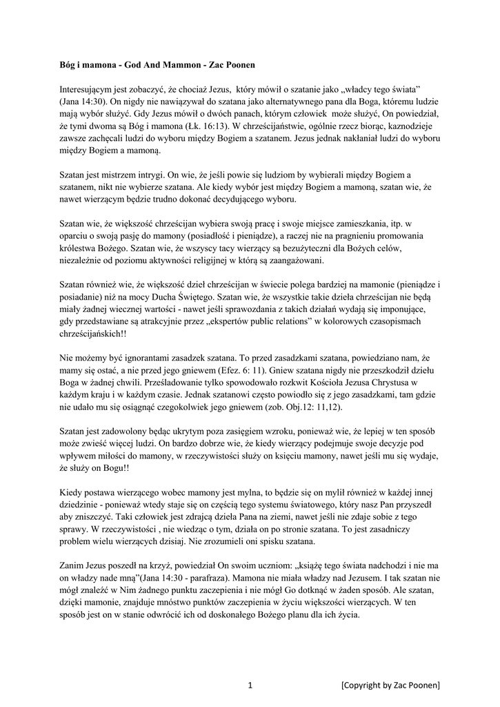 1 [Copyright by Zac Poonen] Bóg i mamona