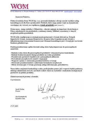 Szanowni Państwo, Polsko-Gruzińska firma WGM Sp. z oo prowadzi