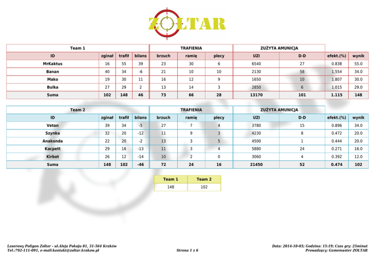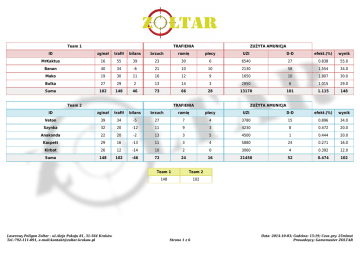 Team 1 TRAFIENIA ZUŻYTA AMUNICJA ID zginał trafił bilans