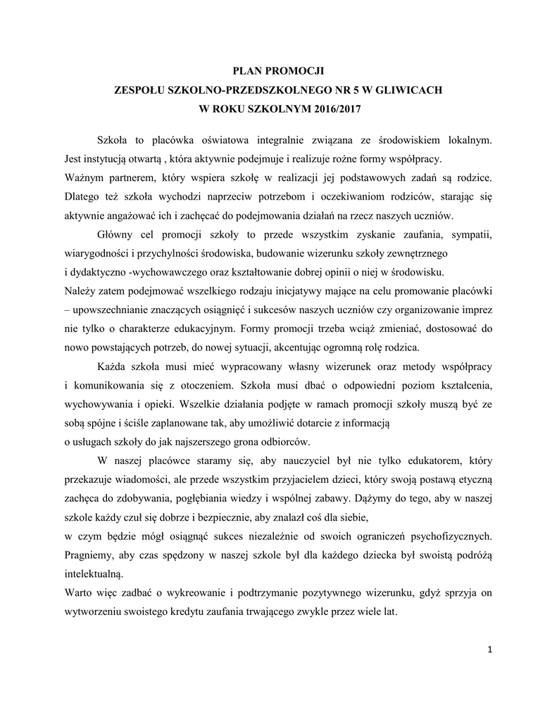 Plan promocji - Zespół Szkolno-Przedszkolny Nr 5 w Gliwicach