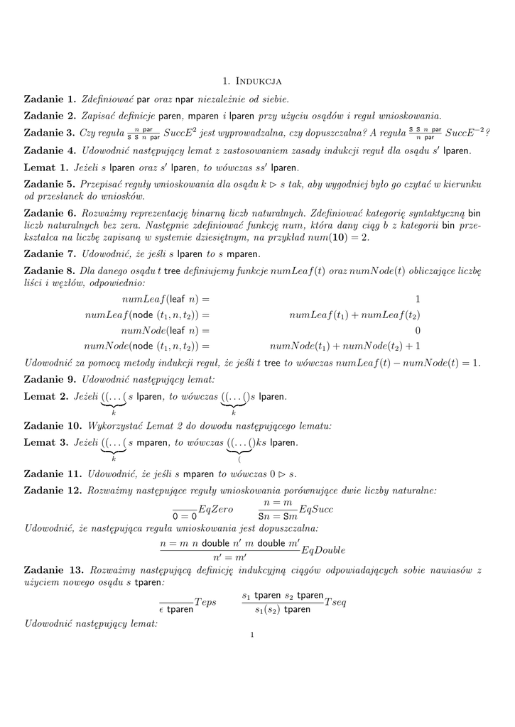 Zadanie 13. Rozważmy następującą definicję indukcyjną ciągów odpowiadających sobie nawiasów z