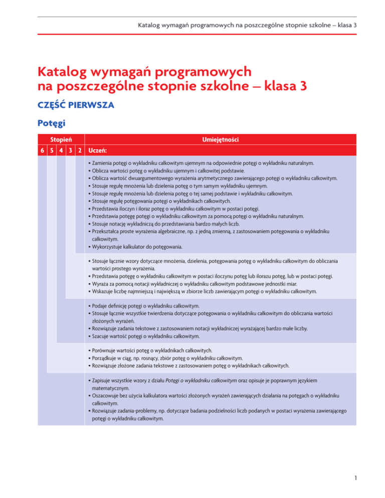 Katalog wymagań programowych na poszczególne stopnie szkolne
