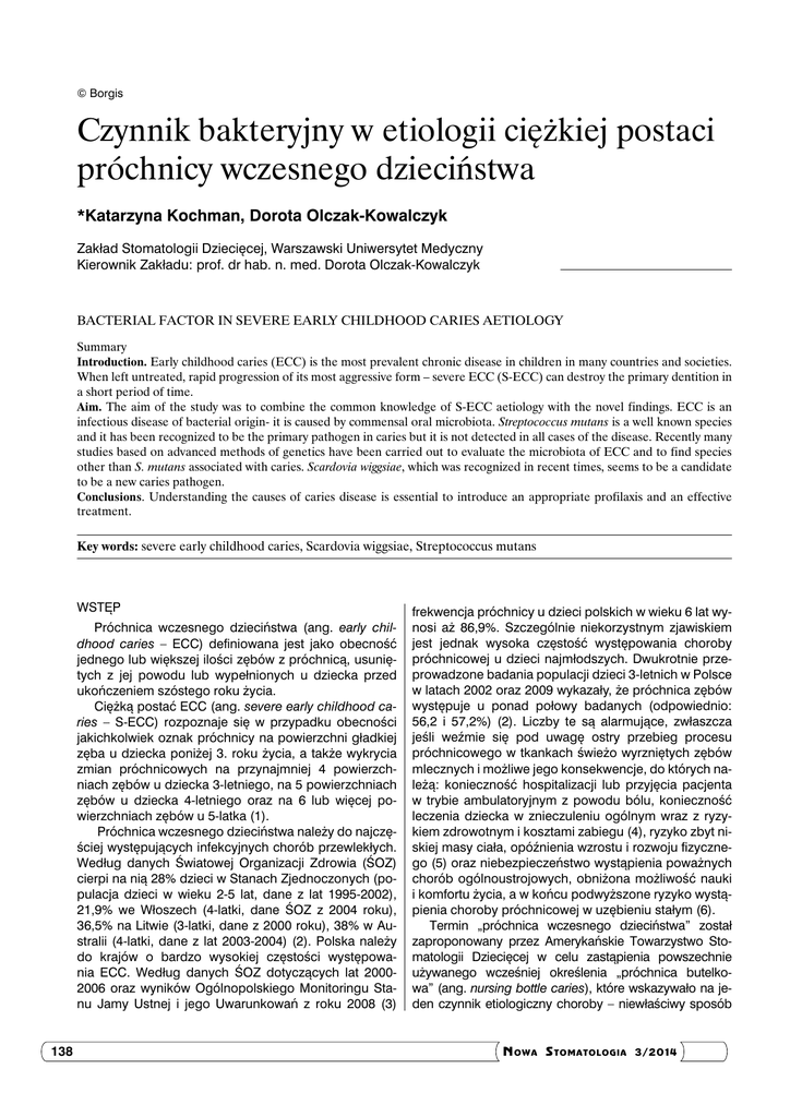 Czynnik bakteryjny w etiologii ciężkiej postaci próchnicy wczesnego