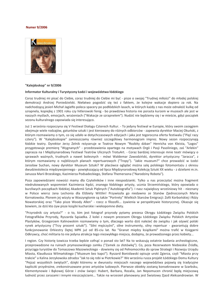 9/2006 - Kalejdoskop Kulturalny Reymont