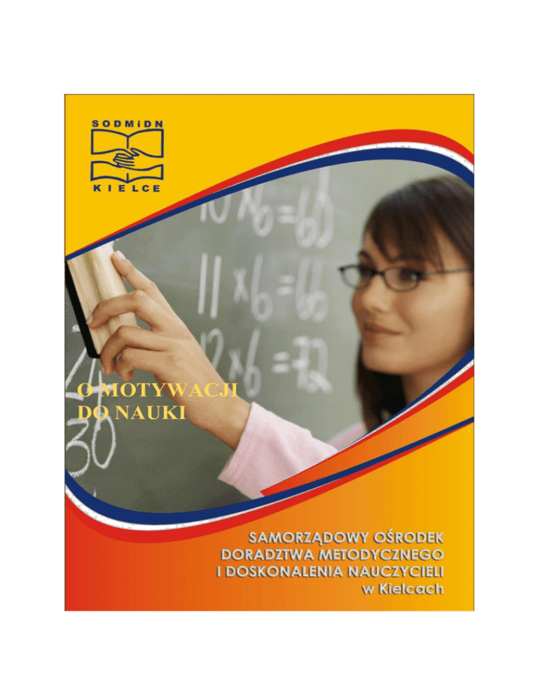 O MOTYWACJI DO NAUKI O motywacji do nauki JOANNA KIMLA, JOLANTA KUKLIŃSKA ZOFIA PIETRASZEK, BEATA TOMALA MOTYWACJA DO NAUKI WSTĘP Motywacja to wszystkie mechanizmy odpowiedzialne za podjęcie, ukierunkowanie, podtrzymanie i zakończenie działań, czyli można powiedzieć, że jest to siła, która napędza nas do osiągania celów i pokonywania trudności. Wiąże się nieodłącznie z procesem nauczania - uczenia się, zarówno ta zewnętrzna, jak i wewnętrzna. Zależna jest w pewnym stopniu od przyjętych przez nauczyciela strategii, ale również od wielu innych czynników mających wpływ na ucznia: kształtujący się obraz siebie, środowisko domowe i lokalne, stan zdrowia. Motywacja do nauki i do rozwoju znajduje więc odzwierciedlenie w sposobie widzenia przez uczniów celów, zadań i uczuć przeżywanych w związku z zadaniami. Dzięki temu można lepiej zrozumieć odmienne traktowanie szkoły, nauki i zadań przez różnych uczniów. 1. Uczniowskie problemy z motywacją i ich przyczyny: czasem uczeń woli unikać niepowodzeń, niż wziąć się solidnie do nauki brakuje mu wiary, że może osiągnąć sukces brakuje mu wiary w siebie, we własne zdolności przeżywa lęk utrudniający skupienie się na zadaniu środowisko rodzinne nie spełnia swej roli. 1.1. Co, wg badań, motywuje uczniów do nauki? - trochę danych liczbowych 35% ciekawie prowadzone lekcje 60% możliwość otrzymania dobrej oceny 40% miły i życzliwy nauczyciel 25% zachęty i pochwały rodziców 20% chęć zdobywania wiedzy 40% zainteresowania 30% chęć bycia najlepszym 0% 20% 40% 60% 80% 100% SODMiDN SAMORZĄDOWY OŚRODEK DORADZTWA METODYCZNEGO I DOSKONALENIA NAUCZYCIELI W KIELCACH 25-431 Kielce, ul. Marszałka J. Piłsudskiego 42 tel./fax. 41 36 76 726, -mail: [email protected] www.sodmidn.kielce.eu KIELCE O motywacji do nauki 1.2. Motywacja zewnętrzna Najczęściej uczniowska motywacja do nauki ma charakter zewnętrzny. Mają na nią wpływ: oceny, opinie rodziców, nauczycieli, kolegów i innych osób. Celem dziecka jest uzyskanie pozytywnej lub uniknięcie negatywnej oceny swoich umiejętności. Warto pamiętać, że dążenie do uzyskania pozytywnej oceny swoich umiejętności skutkuje czasem: próbą unikania porażek, niewykorzystaniem w pełni swoich zdolności w obliczu przeszkód, skłonnością do lęków i negatywnego spostrzegania samego siebie, przypisywaniem popełnianych błędów brakowi zdolności. 2. Uczniowskie strategie unikania porażki – przykłady1 1. Zgłaszanie się do odpowiedzi na początku lekcji, bo dzięki temu nauczyciel może nie zapyta później. 2. Zadanie nauczycielowi pytania na początku lekcji z nadzieją, że później już nie będzie prosił o odpowiedź. 3. Niesłuchanie wypowiedzi kolegów, tylko szukanie tego fragmentu tekstu, który być może przypadnie w udziale do wykonania zadania, np. do tłumaczenia. 4. Nieobecność w szkole, gdy będzie sprawdzian lub inna forma kontroli wiedzy i umiejętności. 5. Milczenie w czasie lekcji, aby uniknąć zaangażowania i konieczności wypowiedzenia się. 6. Wertowanie podręcznika w czasie pytania innych uczniów, by sprawić wrażenie zaangażowania. 3. Motywację do pracy i uczenia się podtrzymują: wiara w swoje możliwości, odwaga w działaniu, umiejętność rozwiązywania problemów, umiejętność radzenia sobie z porażkami i trudnościami, ambicja, jasno określone cele wynikające z potrzeb i marzeń, sukcesy. Motywacja do nauki wiąże się zatem z pracą nad kształtowaniem pozytywnego obrazu siebie przez ucznia, rozwijania potencjalnych możliwości. A wobec tego nauczycielowi nie wystarczy tylko wiedza na temat stosowanych w czasie lekcji technik motywujących do pracy. 1 Dembo Myron H., Stosowana psychologia wychowawcza, WSiP, Warszawa 1997, s.152 SODMiDN SAMORZĄDOWY OŚRODEK DORADZTWA METODYCZNEGO I DOSKONALENIA NAUCZYCIELI W KIELCACH 25-431 Kielce, ul. Marszałka J. Piłsudskiego 42 tel./fax. 41 36 76 726, -mail: [email protected] www.sodmidn.kielce.eu KIELCE O motywacji do nauki 4. Zachowania nauczycieli demotywujące uczniów2 1. Nauczyciel czeka krócej na odpowiedź ucznia mającego kłopoty z uczeniem się. 2. Słabemu uczniowi, który nie odpowiedział lub odpowiedział błędnie, nauczyciel odpowiada sam lub prosi o wyjaśnienie innego ucznia. 3. Za niepowodzenia częściej krytykuje słabego ucznia. 4. Za powodzenie rzadziej chwali słabszego ucznia. 5. Nie udziela informacji zwrotnej słabszego ucznia na lekcji. 6. Poświęca mniej uwagi słabym uczniom i rzadziej wchodzi z nimi w interakcje. 7. Rzadziej wzywa słabych uczniów do odpowiedzi lub zadaje im łatwiejsze pytania. 8. Ogólnie mniej wymaga od słabszych uczniów. 9. Wykazuje mniejszą zażyłość ze słabymi uczniami - rzadziej się uśmiecha. 10. Stosuje wobec słabszych uczniów okrojoną wersję programu - proste treści, nacisk na ich odtwarzanie, zadania służące wyćwiczeniu nawyków zamiast myślenia. 5. Psychologia w służbie edukacji i rozwoju człowieka Wśród nauk o człowieku ważne miejsce zajmuje psychologia, która bada prawa zachowania, czynniki środowiskowe i osobowościowe, które nim kierują. Bada zagadnienia spostrzegania, zapamiętywania, myślenia. Formułuje twierdzenia o prawach motywacji, emocjach i rozwoju człowieka. Na przestrzeni wielu lat psychologowie sformułowali różne koncepcje człowieka. Mają one wpływ na szkołę, na metody wychowania i uczenia. A ponieważ praktyka zmienia się przecież pod wpływem nabywania wiedzy o procesie uczenia się, o ludzkiej inteligencji, o rozwoju człowieka, każda z tych psychologicznych koncepcji jest modyfikowana, uzupełniana o nowe wnioski i spostrzeżenia. Wszystkie są obecne w edukacji - w mniejszym lub w większym stopniu: w organizacji pracy na lekcji, w metodach pracy z uczniem oraz w wychowaniu. To, jakie cele wychowawcze i jakie techniki i metody nauczania wybierze nauczyciel, jak będzie zachowywać się klasa, zależy w pewnym s