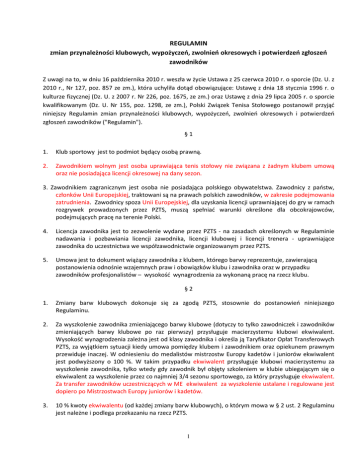 niniejszy Regulamin zmian przynależności klubowych, wypożyczeń, zwolnień okresowych i potwierdzeń