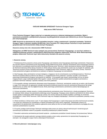 Ogólne warunki sprzedaży Technical Grzegorz Tęgos