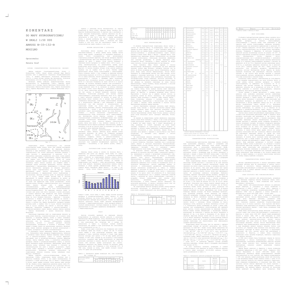 KOMENTARZ DO MAPY HYDROGRAFICZNEJ W SKALI 1:50 000 ARKUSZ N-33-132-B BUDOWA GEOLOGICZNA I LITOLOGIA Opracowała: Renata Graf CHARAKTERYSTYKA PRZYRODNICZA OBSZARU Według podziału fizycznogeograficznego Polski J. Kondrackiego (1998), obszar objęty arkuszem mapy Mogilno położony jest w podprowincji Pojezierza Południowobałtyckie (315), w obrębie makroregionu Pojezierze Wielkopolskie (315.5), w skład którego wchodzą dwa mezoregiony: Pojezierze Gnieźnieńskie (315.54) i Równina Wrzesińska (315.56). Natomiast według podziału geomorfologicznego Niziny Wielkopolskiej B. Krygowskiego (1961), omawiany obszar znajduje się w zasięgu regionu Wysoczyzna Gnieźnieńska (IX) z subregionami: Równina Gnieźnieńska (IX9), Pagórki Gnieźnieńskie (IX10), Pagórki Mogileńskie (IX11) i Równina Wrzesińska (IX15) – rys. 1. Rys. 1. Rozpatrywany obszar charakteryzuje się znacznym zróżnicowaniem rzeźby terenu, która jest efektem morfogenezy plejstoceńskiej i holoceńskiej. Na omawianym obszarze, zwłaszcza w jego wschodniej części (Pojezierze Mogileńskie), rozprzestrzenia się strefa wysoczyzny morenowej płaskiej i lekko falistej o deniwelacjach w granicach 3-10 m. Powierzchnia wysoczyzny urozmaicona jest przez liczne pagórki moreny czołowej (Pagórki Gnieźnieńskie, Pagórki Mogileńskie) oraz bogatą sieć głęboko wciętych (20-40 m) rynien glacjalnych, zajętych obecnie przez jeziora. W południowowschodniej części obszaru znajduje się fragment jednej z większych rynien jeziornych obejmującej jeziora: Pakoskie, Kamienieckie i Skorzęcińskie (Niedzięgiel), z których tylko Jezioro Kamienieckie występuje na obszarze opracowania. Kolejna rynna rozprzestrzenia się od Mogilna (Jezioro Mogileńskie) przez Jezioro Popielewskie do Jeziora Wierzbiczańskiego, z odgałęzieniami jezior Szydłowskiego i Ostrowickiego. Najniżej położony punkt na omawianym obszarze (89 m n.p.m.) stanowi rzędna poziomu wody w Jeziorze Mogileńskim. W rzeźbie terenu, szczególnie na północ od Wydartowa zaznaczają się liczne zagłębienia wytopiskowe, które są suche lub wypełnione wodą (oczka polodowcowe). Strefa pagórków moreny czołowej, rozprzestrzeniająca się w zachodniej części obszaru związana jest z pasmem wzgórz czołowomorenowych, tzw. odcinka środkowopoznańskiego (gnieźnieńskiego) występującego na linii Poznań-PobiedziskaGniezno-Trzemeszno-Konin. Na omawianym obszarze pasmo to rozcięte jest przez sieć dolin rzecznych i rynien jeziornych, co pozwala wydzielić dwa zasadnicze łuki moren czołowych: pierwszy na odcinku Palędzie Dolne - Huta Trzemeszeńska i drugi na linii Palędzie Kościelne – Wydartowo – Cytrynowo. Deniwelacje w obrębie analizowanych pagórków są znaczne i dochodzić mogą nawet do 30 m. Na północ od miejscowości Duszno, w rejonie tzw. Wzgórz Duszyńskich, występuje najwyżej położony punkt o rzędnej 166,7 m n.p.m. Znaczne wzniesienia (158 m n.p.m.) znajdują się również w okolicach Dębna i Wydartowa. Niewielkie fragmenty w północno-zachodniej i południowo-zachodniej części obszaru zajmują równiny sandrowe – Równina Gnieźnieńska i prawie bezjeziorna Równina Wrzesińska. Dominującym kompleksem gleb na rozpatrywanym obszarze są gleby płowe właściwe, rozprzestrzeniające się na prawie całym obszarze, z wyjątkiem wąskiej strefy w części zachodniej zajętej przez gleby rdzawe właściwe. Gleby płowe właściwe wytworzyły się na utworach zwięźlejszych, piaskach gliniastych, glinach i utworach pyłowych obszarów wysoczyznowych, szczególnie w strefach o mniejszej ilości opadów z formami terenu nie sprzyjającymi oglejeniu. Natomiast gleby rdzawe właściwe występują na glinach piaszczystych i piaskach, szczególnie w strefach czołowomorenowych. W użytkowaniu terenu omawianego obszaru dominują grunty orne. Powierzchnie leśne występują fragmentarycznie, zwłaszcza w zachodniej części obszaru. Większe kompleksy leśne znajdują się w północno-zachodniej części w rejonie WymysłowoJastrzębowo oraz w południowo-zachodniej, poniżej Wymysłowa Dolnego. Zwarty kompleks leśny, o niewielkiej powierzchni, występuje również w południowo-wschodniej części, w dolinie Noteci Zachodniej między Ostrówkiem i Myślątkowem. Wśród lasów dominują sosny, natomiast lasy mieszane i liściaste są charakterystyczne dla gleb o większej wilgotności. Użytki zielone (łąki) występują w dolinach rzecznych i strefach przyjeziornych. Nieznaczne natomiast powierzchnie na rozpatrywanym obszarze stanowią tereny zabudowane miast Mogilna i Trzemeszna. Według podziału rolniczo-klimatycznego Polski R. Gumińskiego (1948), rozpatrywany obszar położony jest w dzielnicy środkowej (VIII), w jej części wielkopolskiej. W porównaniu z innymi dzielnicami jest to obszar o najmniejszych w Polsce sumach opadów rocznych, które wynoszą nawet poniżej 500 mm. Średnia roczna temperatura powietrza wynosi około 8oC. Liczba dni z przymrozkami kształtuje się w granicach 100-110, natomiast pokrywa śnieżna utrzymuje się od 50 do 80 dni. Czas trwania okresu wegetacyjnego wynosi od 210-220 dni. Analizowany obszar znajduje się w zasięgu niecki mogileńsko-łódzkiej, w której główną serię osadową tworzą utwory kredy górnej, osiągającej tu największe miąższości w Polsce. Profil stratygraficzny skał górnokredowych rozpoczynają piaskowce wapniste, nad którym występują wapienie z przewarstwieniami opok oraz domieszką kwarcu i glaukonitu, a zamykają go opoki i margle. Strop utworów kredowych w omawianym rejonie występuje na rzędnej około –150 m n.p.m., a cechą charakterystyczną są cechsztyńskie wysady solne przebijające serię utworów jurajskich i kredowych (antyklina Mogilna). W rejonie Palędzia Dolnego strop utworów permskich znajduje się na rzędnej 0-25 m n.p.m. Powłokę osadów kenozoicznych tworzą utwory trzeciorzędowe i czwartorzędowe. Utwory oligocenu (mu