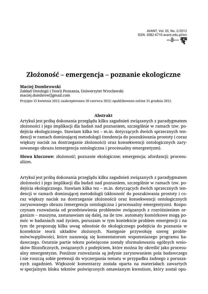 Złożoność – emergencja – poznanie ekologiczne