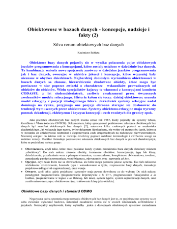 Obiektowosc w bazach danych - koncepcje, nadzieje i fakty (2)