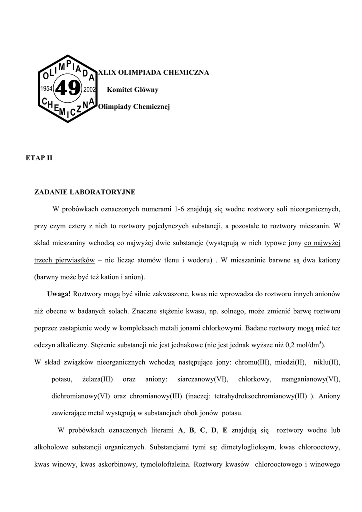 Wniosek: w probówce nr 6 jest chromian(III) potasu w roztworze alkalicznym