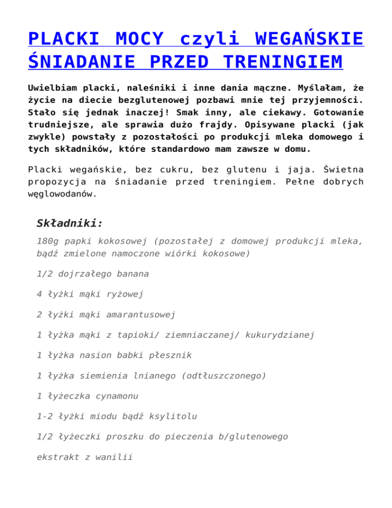 PLACKI MOCY czyli WEGAŃSKIE ŚNIADANIE PRZED TRENINGIEM