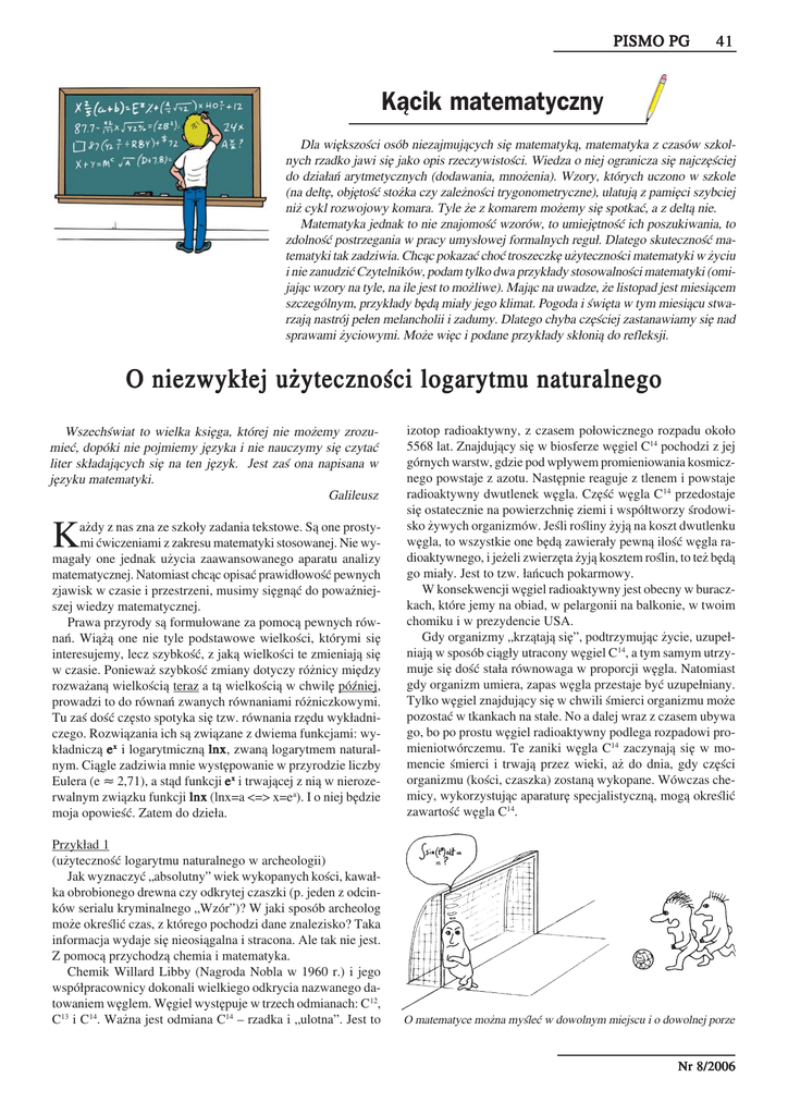 O niezwykłej użyteczności logarytmu naturalnego K¹cik matematyczny