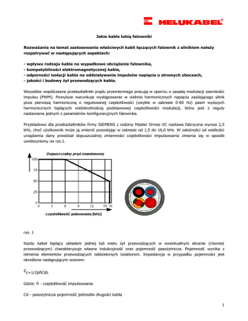 Jakie kable lubią falowniki RozwaŜania na temat zastosowania właściwych kabli łączących falownik z silnikiem naleŜy rozpatrywać w następujących aspektach: - wpływu rodzaju kabla na wypadkowe obciąŜenie falownika, kompatybilności elektromagnetycznej kabla, odporności izolacji kabla na oddziaływanie impulsów napięcia o stromych zboczach, jakości i budowy Ŝył przewodzących kabla. Wszystkie współczesne przekształtniki prądu przemiennego pracują w oparciu o zasadę modulacji szerokości impulsu (PWM). PowyŜsze warunkuje występowanie w widmie harmonicznych napięcia zasilającego silnik poza pierwszą harmoniczną o regulowanej częstotliwości (zwykle w zakresie 0-60 Hz) pasm wyŜszych harmonicznych będących wielokrotnością podstawowej częstotliwości modulacji, która jest z reguły nastawiana jednym z parametrów konfiguracyjnych falownika. Przykładowo dla przekształtników firmy SIEMENS z rodziny Master Drives VC nastawa fabryczna wynosi 2,5 kHz, choć uŜytkownik moŜe ją zmienić pozostając w zakresie od 1,5 do 16,0 kHz. W zaleŜności od wielkości urządzenia dany przedział dopuszczalnej zmienności częstotliwości impulsowania zmienia się w sposób uwidoczniony na rys.1. rys. 1 KaŜdy kabel będący układem jednej lub wielu Ŝył przewodzących w ewentualnym ekranie (równieŜ przewodzącym) charakteryzuje własna indukcyjność oraz pojemność pasoŜytnicza. Pojemność wynika z istnienia elementów przewodzących oddzielonych izolatorem. Impedancja w przypadku pojemności jest określona następującym wzorem: Zc=1/2pfiCdL Gdzie: fi - częstotliwość impulsowania Cd - pasoŜytnicza pojemność jednostki długości kabla 1 L - długość kabla łączącego wyjście falownika z silnikiem Widzimy, zatem jasno, Ŝe impedancja maleje wraz ze wzrostem zaprogramowanej częstotliwości impulsów, pojemności właściwej kabla (będącej jego parametrem konstrukcyjnym) oraz długości przewodów zasilających silnik. Im mniejsza jest wartość wypadkowej impedancji pojemnościowej układu przewodów zasilających silnik, tym większy prąd płynący przez pojemności pasoŜytnicze. Wartość tego prądu sumuje się z właściwym obciąŜeniem przekształtnika, co w krytycznym przypadku prowadzi do konieczności przewymiarowania falownika w aplikacjach z bardzo długimi kablami. Producenci przekształtników niekiedy podają proponowane dopuszczalne długości kabli ekranowanych oraz nieekranowanych, lecz z natury rzeczy są to dane bardzo szacunkowe, poniewaŜ w zasadzie nie wiemy, o jakiego producenta chodzi. Przy czym większość producentów nie prowadzi nawet badań takich parametrów jak pojemność właściwa dla swoich wyrobów. W wypadku przekształtników rodziny Master Drives VC firma SIEMENS podaje, Ŝe moŜliwe jest zwiększenie o 150% dopuszczalnej długości kabli zasilających silnika przy zastosowaniu przewodów specjalnych PROTOFLEX EMV, które nie są juŜ obecnie produkowane przez koncern. W takim przypadku moŜliwe jest zastosowanie zamiennika o zgodnych parametrach. Kable TOPFLEX-EMV-2YSLCY-J (do zastosowań wewnętrznych, w izolacji przezroczystej) oraz TOPFLEX-EMV-UV-2YSLCYK-J (do zastosowań zewnętrznych, w izolacji czarnej, które są ponadto odporne na działanie promieni ultrafioletowych) firmy HELUKABEL są dokładnie kompatybilne z PROTOFLEX. Na uwagę zasługuje tu „jawność” wartości pojemności właściwej kabla zdefiniowana w [nF/km], której wartość zmienia się oczywiście w zaleŜności od przekroju Ŝyły w granicach od 70 (4x1,5 mm2) do 250 (4x95 mm2) nF/km – wartość między Ŝyłami od 110 (4x1,5 mm2) do 410 (4x95 mm2) nF/km – wartość między Ŝyłą a ekranem dla wyŜszych przekrojów wartość juŜ znacząco nie wzrasta. Biorąc pod uwagę, Ŝe powyŜsze kable są wykonywane jako czteroŜyłowe naleŜy przy obliczaniu pojemności wypadkowej uwzględnić, Ŝe na jednostkę długości kabla składa się sześć połączonych równolegle kondensatorów między Ŝyłowych oraz cztery zastępcze kondensatory typu Ŝyła/ekran. Pamiętając, Ŝe dla połączenia równoległego kondensatorów ich pojemność sumujemy, naleŜy całkowitą pojemność zastępczą obliczać ze wzoru: Cd = 6xCŜ + 4xCe gdzie: CŜ – pojemność między Ŝyłami Ce – pojemność między Ŝyłą a ekranem Tak więc przykładowo wypadkowa właściwa pojemność pasoŜytnicza dla kabla 4x16 mm2 wyniesie 1760 nF/km. Natomiast obliczenie wartości prądu płynącego w wyniku występowania zjawiska upływu przez pojemności pasoŜytnicze moŜna wykonać w oparciu o następujące przykładowe załoŜenia: - Wartość skuteczna harmonicznej zgodnej z częstotliwością modulacji 2,5 kHz wynosi 15% wartości 2 pierwszej harmonicznej napięcia zasilającego 400V, czyli 0,15x400=60V. - Napięcie skuteczne powyŜszej harmonicznej pomiędzy Ŝyłami wynosi, zatem 60V, natomiast dla układów sieci z uziemionym punktem zerowym transformatora (nie IT) 0,5x60V=30V. - Zatem sumaryczny upływ prądu między Ŝyłami wynosi dla kabla 4x16 mm2 o długości 100 m: I=U/ ZŜ+U/2 Ze =60V/758,27 W+30V/692,33 W=0,08A+0,04A=0,12A ZŜ=1/2pfi6CŜL=758,27 W Ze=1/2pfi4CeL=692,33 W Jak widać powyŜej juŜ sama część upływu do ekranu (0,04A) wystarcza do wyeliminowania z gry np. wyłącznika róŜnicowo-prądowego o znamionowym prądzie wyzwolenia DIn=30 mA. Oczywiście w celu wykonania pełnych obliczeń naleŜy wziąć pod uwagę równieŜ dalsze harmoniczne częstotliwości impulsowania. W konstrukcji kabla zastosowano izolacyjną warstwę dystansową pomiędzy Ŝyłami, a ekranem, która oddalając ekran od Ŝył obniŜa pojemność Ce. Drugim istotnym aspektem zastosowania właściwych kabli jest potrzeba spełnienia wymogów kompatybilności elektromagnetycznej. Kable z rodziny TOPFLEX firmy HELUKABEL są wyposaŜone w podwójny ekran, składający się z wewnętrznej warstwy foliowej oraz zewnętrznego oplotu elastycznego zapewniający