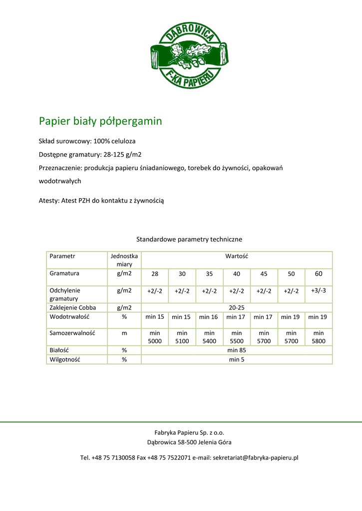 Papier biały półpergamin - Fabryka Papieru Dąbrowica