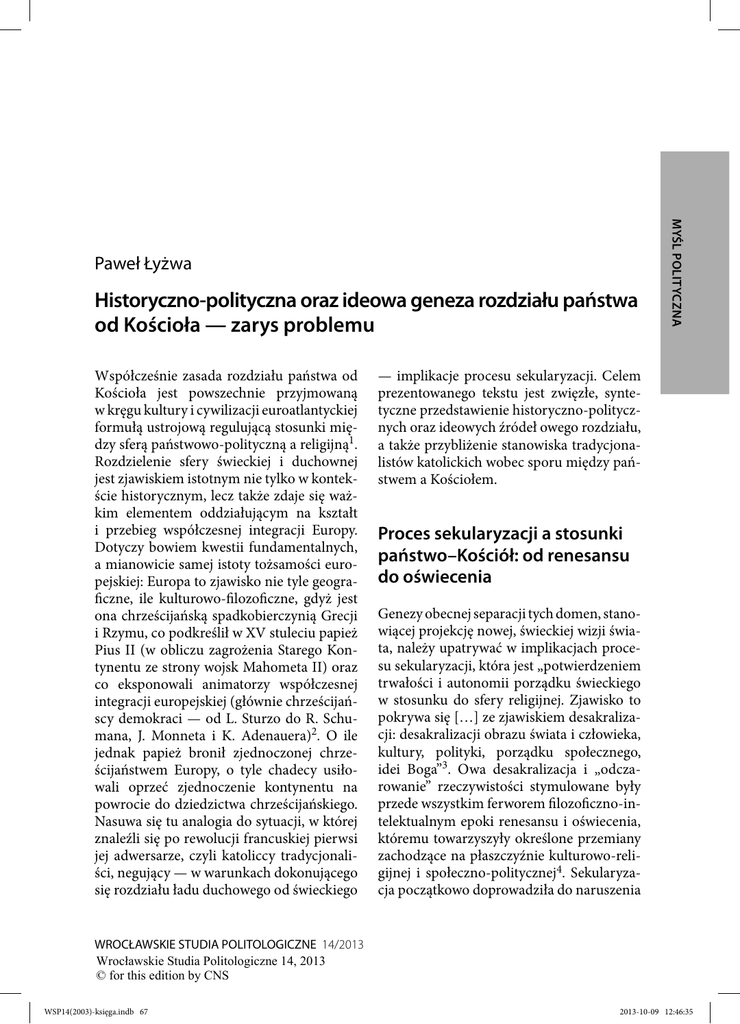 Historyczno-polityczna oraz ideowa geneza rozdziału państwa od