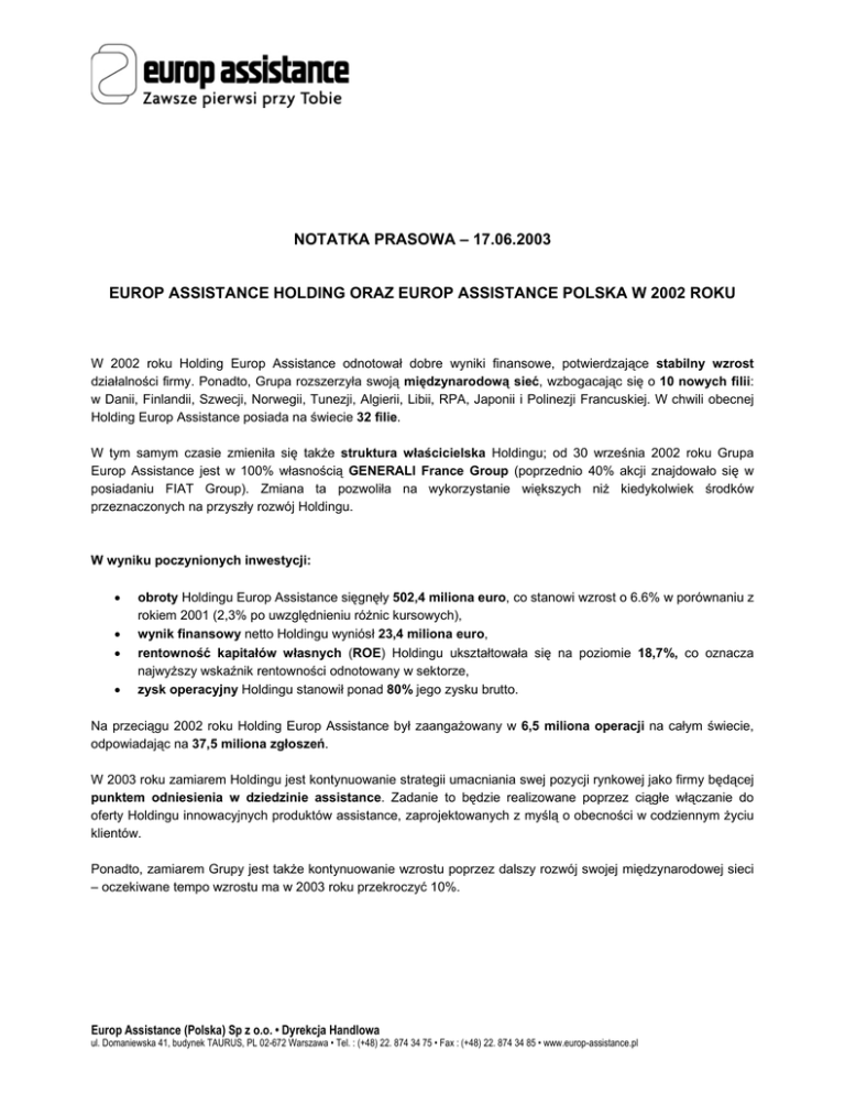 17.06.2003 europ assistance holding oraz europ assistance polska