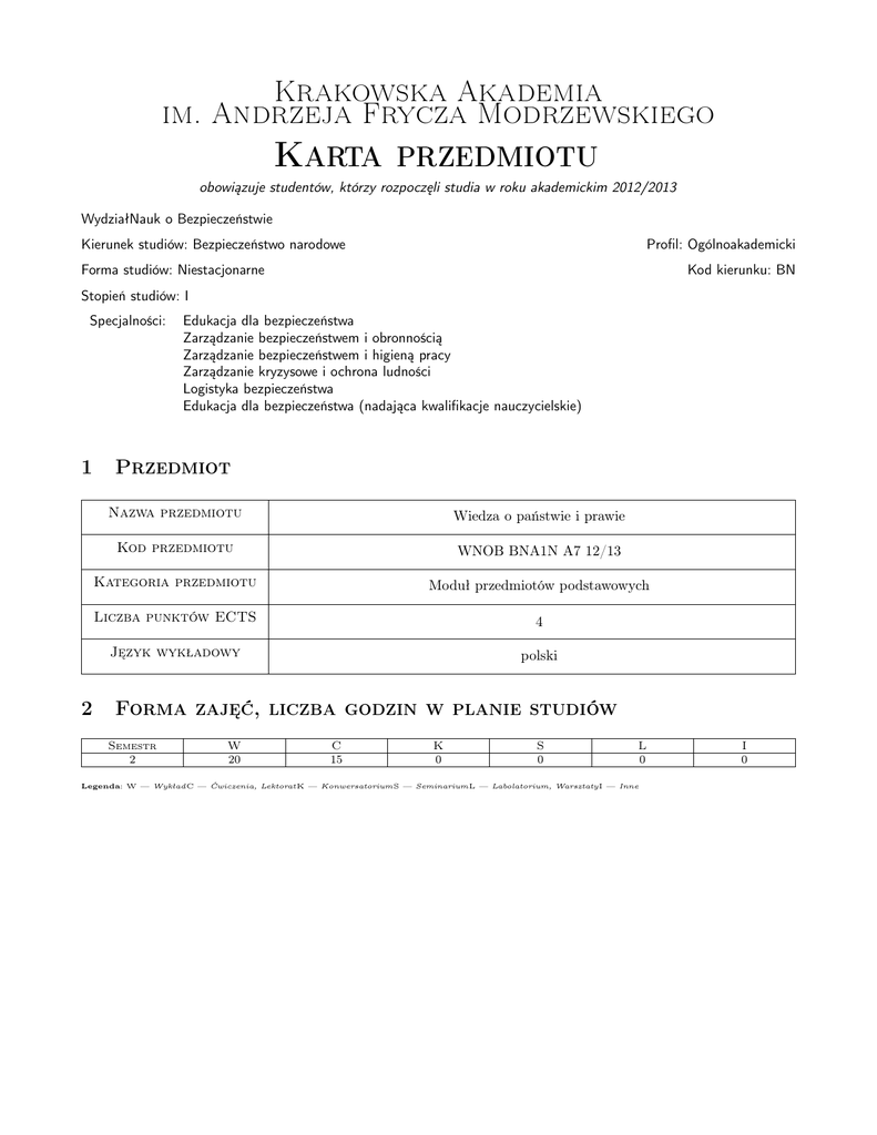Wiedza o państwie i prawie - Krakowska Akademia im Andrzeja