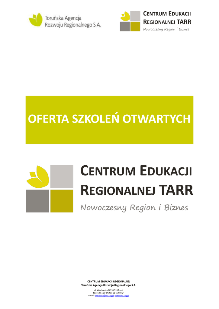 Oferta szkoleŃ Centrum Edukacji Regionalnej TARR 2012