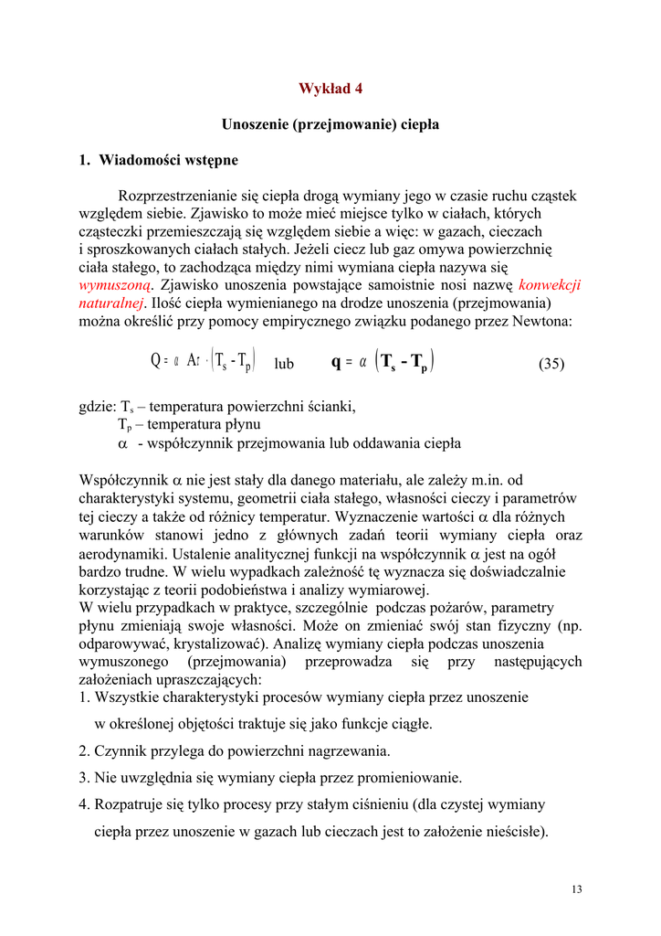 ciepła przez unoszenie w gazach lub cieczach jest to założenie nieścisłe).