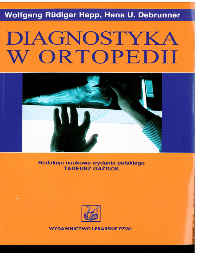Wolfgang Riidiger Hepp, Hans U. Debrunner DIAGNOSTYKA W ORTOPEDII Redakcja naukowa wydania polskiego TADEUSZ GAŹDZIK W YD A W NICTW O LEKARSKIE PZWL Wolfgang Rudiger Hepp, Hans U. Debrunner DIAGNOSTYKA W ORTOPEDII Redakcja naukowa wydania polskiego prof. dr hab. med. TADEUSZ GAŹDZIK Tłumaczenie z języka niemieckiego lek. RAFAŁ ROKICKI WARSZAWA W YD A W NICTW O LEKARSKIE PZWL Spis treści Przedmowa do siódmego wydania 11 Przedmowa do wydania polskiego 13 Część ogólna Wprowadzenie ....................................... 17 Piśm iennictw o....................................... 18 1 Z historii ortopedii............................... 19 Piśm iennictw o....................................... 20 2 Dokumentacja m e d y c z n a ................ 21 Informacje ................................................. Dokumentacja .......................................... Analiza dokum entacji................................ Interpretacja inform acji............................. Piśm iennictw o....................................... 21 22 23 24 24 3 Ogólne badanie pacjentów................ 25 P rz y rz ą d y .................................................... Wywiad dotyczący aktualnych dolegliw ości................................................. D olegliw ości.......................................... Analiza b ó l u .......................................... Ból nocyceptyw ny................................ Rzutowanie (promieniowanie) bólu, n eu ralg ie................................................ Bóle g ło w y ............................................. Towarzyszące objawy wegetatywne . . Zbieranie w y w ia d u .................................... Wywiad rodzinny ................................ Wywiad dotyczący osoby badanej . . . Usystematyzowane badanie pacjenta . . . Skóra .................................................... G ł o w a .................................................... S z y ja ....................................................... Klatka p iersio w a.................................... B rz u c h .................................................... Narządy r o d n e ....................................... Badanie o d bytnicy................................ 25 25 25 26 26 26 27 27 29 29 30 30 30 31 31 31 31 31 31 Badanie ortopedyczne.......................... Badanie n e u ro lo g ic z n e ....................... Ocena i osobiste wrażenie ....................... Dodatkowe badania dotyczące kości i s ta w ó w ....................................................... Specjalistyczne badania (dodatkowe) . . . Badanie re n tg en o w sk ie....................... Artrografia .......................................... Badanie ultrasonograficzne................ Tomografia komputerowa (TK) . . . . Rezonans m ag n ety czn y ....................... Metody medycyny nuklearnej (scyntygrafia) ....................................... A rtro s k o p ia .......................................... B io p sja.................................................... Piśm iennictw o....................................... 31 32 32 32 32 32 33 33 33 34 34 35 35 36 4 Wzrastanie i d o jrz e w a n ie ................ 37 Przyrost długości ciała ............................. Całkowita długość c i a ł a ....................... Długość tu ło w ia .................................... Długość dolnej części ciała ................ Długość ud i goleni ............................. Masa c ia ł a .................................................... Powierzchnia ciała .................................... Wydolność p ł u c .......................................... Wiek kostny (okres pokwitania) ............. Dojrzewanie p łc io w e ................................ Budowa ciała w niewydolności przysadkowej ....................................... Budowa ciała w nadczynności przysadki................................................. Budowa ciała h ip o g o n a d a ln a ............. Budowa ciała hipergonadalna............. Konstytucjonalne typy budowy ciała u d o r o s ły c h ................................................. Piśm iennictw o....................................... 37 38 38 38 38 39 39 39 39 42 45 46 5 Badanie neurologiczne w ortopedii 47 Badanie czynności ruchowej i napięcia mięśniowego................................................. Badanie czucia.............................................. 47 48 43 45 45 45 5 Spis treści Czucie d o t y k u ....................................... Czucie bólu .......................................... Czucie te m p e ra tu ry ............................. Czucie wibracji .................................... Czucie położenia ................................ Parestezje i objawy podrażnienia czuciowego .......................................... Zaburzenia troficzne i wegetatywne. . . . Zaburzenia troficzne mięśniówki, neurogenny zanik mięśni ................... Zaburzenie unerwienia wegetatywnego przy uszkodzeniach nerwów obw odow ych.......................................... Badanie odruchów .................................... Odruchy własne (pochodzące z własnych re c e p to ró w ).......................................... Odruchy obce (odruchy skórno-mięśniowe) ............................. Badanie koordynacji r u c h o w e j................ Zborność ruchów (zaburzenie = ataksja) Zaburzenia koordynacji statycznej . . Zespoły uciskowe nerwów obwodowych ............................................. Badania elektrofizjologiczne................... Elektromiografia ( E M G ) .................... Badanie elektroneurograficzne . . . . Punkcja lę d ź w io w a .................................... Regulacja czynności ruchow ych................ Odruchy w pierwszym roku życia . . . Odruchy to n ic z n e ................................ Odruchy błędnikowe (odruchy położenia c i a ł a ) .................................... Prawidłowy rozwój ruch o w y................ Mózgow
