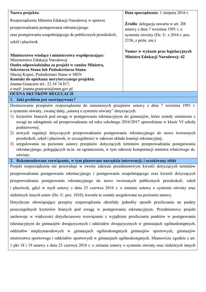 Nazwa projektu: Rozporządzenie Ministra Edukacji Narodowej w