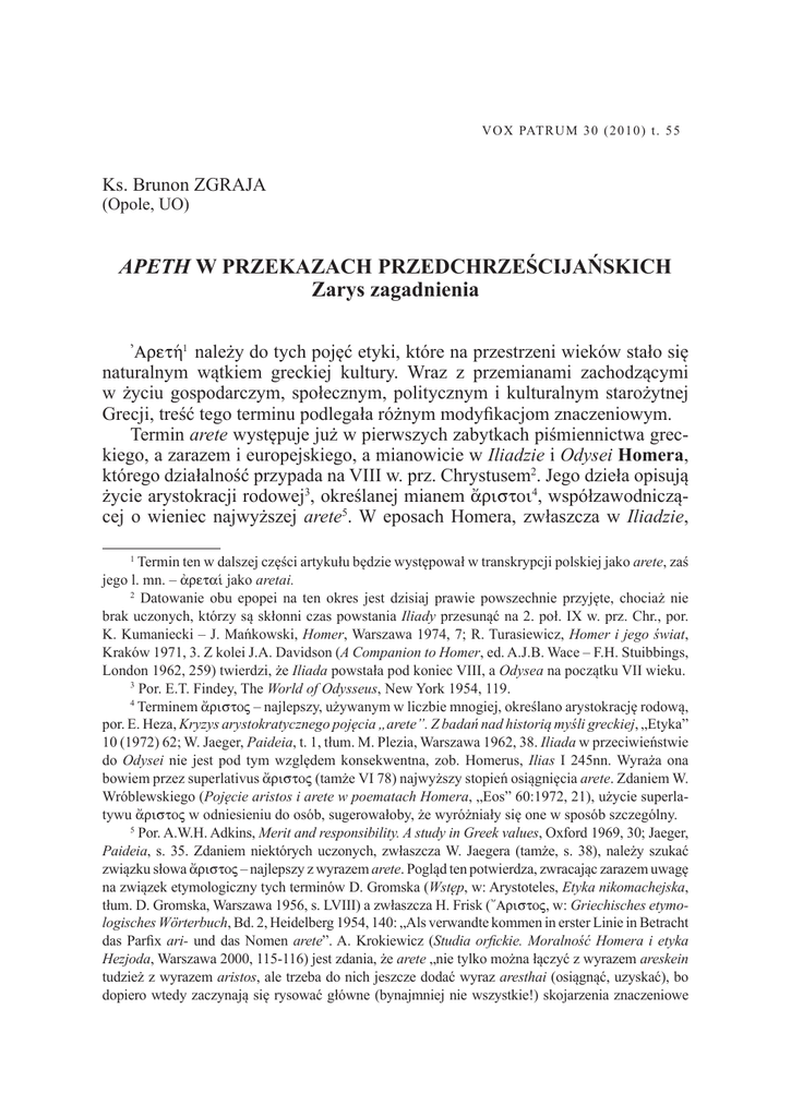 das Parfix ari- und das Nomen arete”. A. Krokiewicz (Studia orfickie. Moralność Homera i etyka