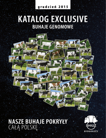 Drodzy Hodowcy! Z wielką dumą prezentujemy najnowszy Katalog Exclusive po wycenie grudzień 2015. Trafiły do niego nasze najlepsze - specjalnie wyselekcjonowane buhaje. Chcieliśmy, aby oferta spełniła oczekiwania najbardziej wymagających klientów i w tym też celu, oraz dla ułatwienia realizacji tych życzeń - wydanie podzieliliśmy na dwie kategorie. Kategoria VIP – tu znajdziecie Państwo buhaje o najwyższych parametrach, które ze względu na ogromne zainteresowanie ze strony Hodowców i młody wiek, a zatem i krótką historię produkcji nasienia mają ograniczoną ilości dostępnych porcji. Są to buhaje przeznaczone dla tych Hodowców, którym zależy na wykorzystaniu najlepszej światowej genetyki do programu hodowlanego we własnych stadach. Kategoria Business Class – w tej kategorii umieściliśmy buhaje również gwarantujące najwyższe parametry hodowlane bez ograniczeń jeśli chodzi o dostępność nasienia. Zapraszamy do korzystania z naszej oferty. Przypominamy także o możliwości nieodpłatnego korzystania z fachowego doradztwa naszego zespołu Doradców Hodowlanych – pomogą oni Państwu w doborze najlepszych i zarazem najbardziej dopasowanych buhajów do potrzeb Waszego stada. Pamiętajcie -pokrycie mamy w naturze! Wiesław Drewnowski Prezes Zarządu strony 4-9 strony 10-13 3 NOWOŚĆ! gPF: 158 Nr: PL005366997117 TL TV Data urodzenia: 16-01-2015 Hodowca: OHZ Lubiana Sp. z o.o. DE SU 521 BOOKEM ET BIG POINT R2G JULEIK IOTA CENAR INQUIETE INQUIETE INQUIETE Wartość hodowlana dla: 131 długowieczności mleko 1258 kg tłuszcz 42,8 kg/-0,11 % białko 53,4 kg/0,12 % Podindeksy: Produkcyjny Płodność Pokrój ogólny rama ciała siła mleczności nogi wymię NORMALNE PORODY 115 komórek somatycznych Ojciec buhajów Pokrój: 138 94 131 119 126 112 131 Buhaj nr 1 w ofercie, lider wyceny genomowej w Polsce Ustawienie zadu 89 Postawa nóg tylnych - widok z boku 83 Położenie wymienia 121 Córki dają białko w ilości poszukiwanej przez hodowców i mleczarnie Długość strzyków 97 Daje długowieczne zdrowe córki Jeden z najwyższych wskaźników siły mleczności Buhaj wyjątkowy CASK BB 4 BOCANAD ET NOWOŚĆ! gPF: 151 Nr: FR5941804611 TL TV Data urodzenia: 08-08-2014 Hodowca: Konsorcjum EBP DE SU 521 BOOKEM ET DE SU 11236 BALISTO ET DE-SU 199 DANILLO LONG-LONGS MAN-O-MAN ET HYPOTHESE 3470 MSVISIONGEN SHOTTLE BREE ET Matka buhaja JYPOT IG, Hypothese Wartość hodowlana dla: 124 długowieczności mleko 763 kg tłuszcz 40,3 kg/0,10 % białko 46,1 kg/0,24 % Podindeksy: Produkcyjny Płodność Pokrój ogólny rama ciała siła mleczności nogi wymię SUPER ŁATWE PORODY 109 komórek somatycznych Kompletny profil Jeden z najlepszych synów BALISTO Pokrój: 133 100 127 117 122 114 124 Ustawienie zadu 94 Postawa nóg tylnych - widok z boku 92 Położenie wymienia 118 Długość strzyków 100 Znakomity do poprawy zawartości składników mleka i płodności Bardzo łatwe wycielenia CASK BB Zdrowotność racic RL RP 6 6 5 JYPOT IG gPF: 150 Nr: DE0538239227 TL TV Data urodzenia: 26-11-2013 Hodowca: Konsorcjum EBP FLEVO GENETICS SNOWMAN BUTZ BUTLER SHOTGLASS ET GIL-GAR SHOTTLE SATIN ET SCALONI AL J-K-R BW-MARSHLL BILLION ET HAS ET RUW STADY 122 ET Wartość hodowlana dla: 126 długowieczności mleko 1207 kg tłuszcz 29,7 kg/-0,23 % białko 38,9 kg/-0,02 % Podindeksy: Produkcyjny Płodność Pokrój ogólny rama ciała siła mleczności nogi wymię SUPER ŁATWE PORODY 125 komórek somatycznych FLY-HIGHER STUTTER Lider francuskiej oceny genomowej - gISU 210! Oryginalny, unikalny rodowód Pokrój: 126 116 119 106 110 115 118 Ustawienie zadu 100 Postawa nóg tylnych - widok z boku 108 Położenie wymienia 108 Długość strzyków 106 Jeden z najlepszych buhajów na świecie pod względem produkcji mlecznej (FR 1901, PL 1207), poprawiający jednocześnie zdrowotność wymienia (FR 3,4; PL 125) Specjalista od produkcji dochodowych i długowiecznych krów Idealny do doju robotem Dostępne nasienie seksowane CASK BB Zdrowotność racic 6 IPNOS Babka: RUW ST 122 RL RP 7 8 NOWOŚĆ! gPF: 149 Nr: PL005283712138 TL TV Data urodzenia: 02-02-2015 Hodowca: Ryszard Bober LADYS-MANOR GRAF LA BRON ET LADYS MANOR RD GRAFEETI ET GLEN-TOCTIN SUPER LAVENA BG E.T. FROSTY OMAN BLES 2 FROSTY OMAN BLESS Wartość hodowlana dla: 135 długowieczności mleko 1226 kg tłuszcz 41,6 kg/-0,11 % białko 39,5 kg/-0,02 % Podindeksy: Produkcyjny Płodność Pokrój ogólny rama ciała siła mleczności nogi wymię DA-SO-BURN OMAN BLESS ŁATWE PORODY 107 komórek somatycznych DIAMOND-OAK FROSTY ET Zakorzeniony w amerykańskiej rodzinie Bless Jedna z najwyższych płodności córek Pokrój: 129 110 120 109 113 106 122 Ustawienie zadu 97 Postawa nóg tylnych - widok z boku 107 Położenie wymienia 113 Długość strzyków 107 Wybitna produkcja mleczna Córki funkcjonalne i długowieczne CASK AB Prababka: DA-SO-BURN OMAN 7 LE MOND NOWOŚĆ! gPF: 145 Nr: FR8576712540 TL TV Data urodzenia: 22-09-2014 Hodowca: Konsorcjum EBP DE SU 521 BOOKEM ET VAL BISSON DOORMAN IMELDA LAUTHORITY BOLTON HEIDEBLUME DIGITALE VANOISE Wartość hodowlana dla: 119 długowieczności mleko 289 kg tłuszcz 12,9 kg/0,01 % białko 21,0 kg/0,14 % Podindeksy: Produkcyjny Płodność Pokrój ogólny rama ciała siła mleczności nogi wymię NORMALNE PORODY 124 komórek somatycznych Ojciec buhajów Numer 2 wśród synów buhaja Doorman we Francji Pokrój: 112 106 143 127 124 113 148 Ustawienie zadu 94 Postawa nóg tylnych - widok z boku 111 Położenie wymienia 140 Długość strzyków 97 Wysoka funkcjonalność i typ Wysoka wydajność białka Poprawia parametry zdrowotne CASK BB Zdrowotność racic 8 JADOBLUM Matka: Heideblume RL RP 4 4 NOWOŚĆ! gPF: 148 Nr: FR8550489341 TL TV Data urodzenia: 12-09-2014 Hodowca: Konsorcjum EBP DE SU 521 BOOKEM ET SWISSBEC BREKEM BRENNA ALCHEMY ATWOOD DKR CLARIS CLARA CHASSITY Wartość hodowlana dla: 129 długowieczności mleko 1178 kg tłuszcz 31,1 kg/-0,20 % białko 36,7 kg/-0,03 % Podindeksy: Produ