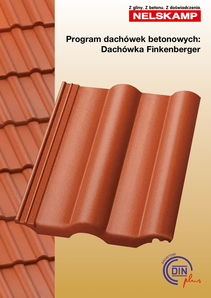 Program dachówek betonowych: Dachówka Finkenberger Dachówki Finkenberger. Klasyczna dachówka na niemieckich dachach: dachówka Finkenberger. Klasyczna, zawsze aktualna forma z zaokrągloną krawędzią jest jednym powodem sukcesu, jakość drugim. Dachówki Finkenberger w szczegółach: -produkcja według DIN/EN 490/491 z bocznym zamkiem i wyższymi od wymogów cechami jakości -przykryta zakładka boczna i potrójne użebrowanie nóżki dla optymalnej ochrony -nieprzepuszczające wody, odporne na mróz i stabilne w formie, dokładne wymiary z wysoką wytrzymałością na ściskanie -nakładka: ok. 7,5 - 10,6 cm -22° znormalizowane nachylenie dachu -zapotrzebowanie na m2 ok. 10 sztuk Drzewa oczyszczają powietrze...., teraz czynią to także dachówki.* Wzorem jest natura: drzewa przez proces fotosyntezy przyczyniają się do oczyszczania powietrza. Nasze dachówki swoją powierzchnią typu ClimaLife również oczyszczają środowisko * ClimaLife firmy Nelskamp naturalne z substancji szkodliwych emitowanych przez kotłownie, przemysł i komunikację. Do 90 % z tych zanieczyszczeń ulega neutralizacji przy świetle dziennym, a przy bezsłonecznej pogodzie do 70 %. Zawdzięczamy to dwutlenkowi tytanu w mikrobetonie. Przekształca on przede wszystkim tlenki azotu (NOX) w substancje nieszkodliwe jak NO3- i to nieustannie, ponieważ dwutlenek tytanu stanowi swego rodzaju nigdy nie zużywający się katalizator. Cała reszta to już zadanie deszczu, który po prostu zmywa niegroźne już substancje z dachu. ClimaLife –Ochrona środowiska pod czystym dachem. • Pierwsza dachówka, która oczyszcza powietrze ze spalin • Cząsteczki zanieczyszczeń i kurz atmosferyczny spłókuje deszcz • Aktywna redukcja substancji szkodliwych przez fotokatalizę –przez cały okres żywotności dachu • Jakość kontrolowana: TXActive®* • Indywidualny charakter o naturalno-matowej powierzchni • Idealny dla dachów miejskich XActive® jest zarejestrowanym, licencjonowanym znakiem towarowym. Jako uznany w całej europie znak jakości jest gwarancją trwałej, fotokatalitycznej aktywności materiałów budowlanych. LONGLIFE to nowa, wiodąca technologia w produkcji dachówek betonowych. Gładka powierzchnia z mikrobetonu i nowo rozwinięta, lekko błyszcząca warstwa farby dbają o czyste dachy i długotrwałą intensywność koloru. Zanieczyszczenia są zmywane przez deszcz, niedając możliwości rozrastania się mchom czy innym roślin. SG = SAMOCZYSZCZĄCA SG = samoczyszczące dachówki betonowe posiadają nową nawierzchnię farby, na której mchy i rośliny nie znajdują możliwości rozrastania się. Jak wszystkie dachówki betonowe firmy Nelskamp również program TOP 2000 S jest produkowany na najnowocześniejszych maszynach i przy użyciu wybranych, wartościowych surowców. Szeroka paleta lekko błyszczących nawierzchni kolorowych spełnia życzenia atrakcyjnego i indywidualnego kształtowania dachu. Kolory. czerwień ceglasta szary łupek brąz 4) ciemny brąz 2) granit czerń 1), 2), 3) czerwień żywa 2) średnioszary 1), 2), 3) czerwonobordowy 2) czerwony 1), 2) szary cementowy 1), 2), 3) granit 4) 1) LONGLIFE, 2) 2) 4) 4) SAMOCZYSZCZĄCA (SG), 3) TOP 2000 S, 4) CLIMALIFE Nawierzchnie dachówek betonowych: TOP 2000 S SG = SAMOCZYSZCZĄCA LONGLIFE Samoczyszczące Przy tym samym nakryciu farbą dachówki betonowe LONGLIFE w porównaniu do dachówek betonowych SG posiadają zalety dzięki głatkiej nawierzchni z mikrobetonu. Trwałość kolorów Odnośnie trwałości kolorów nawierzchnie dachówek SG i LONGLIFE posiadają naj-wyższe rezerwy przy rozkładzie wskutek światła ultrafioletowego i wpływów atmosferycznych. Wytrzymałość na ścieranie Nawierzchnie dachówek betonowych SG i LONGLIFE posiadają szczególną wytrzymałość na ścieranie. Powierzchnia mikrobetonowa optymalizuje dodatkowo te właściwości. Odporność na obrośnięcie Wyniki samoczyszczenia mają także pozytywne skutki na odporność na obrośnięcie mchem lub roślinami. Ogólnie Podawane wyniki dla naszego programu dachówek betonowych opierają się na licznych próbach laboratoryjnych i już także wieloletnich doświadczeniach w naturze. Ze względu na proces wydruku mogą występować w różnice w kolorach. Nawierzchnie dachówek betonowych: Przez transport możliwe są lekkie uszkodzenia nawierzchni. Jakość dachówek przez to się nie pogarsza. Program. Kształtki o różnych funkcjach spełniają wymogi homogenicznych, architektonicznie estetycznych powierzchni dachowych. Ponadto stanowią istotny czynnik bezpieczeństwa. Kształtki i akcesoria redukują nakład pracy przy układaniu i ułatwiają kalkulację. Na naszych stronach internetowych www.nelskamp.de znajdą Państwo kompletny program dla każdej dachówki. Dachówka podstawowa Długość: ~ 42,0 cm Długość krycia: ~ 31,4 - 34,5 cm* Szerokość: ~ 34,0 cm Szerokość krycia: ~ 30,0 cm Ciężar: ~ 4,6 kg Zapotrzebowanie: ~ 10,0 sztuk/m2 Dachówka połówkowa Długość: ~ 42,0 cm Długość krycia: ~ 31,4 - 34,5 cm* Szerokość: ~ 19,0 cm Szerokość krycia: ~ 15,0 cm Ciężar: ~ 2,7 kg Zapotrzebowanie: ~ 3,0 sztuk/m Dachówka dwufalowa Długość: ~ 42,0 cm Długość krycia: ~ 31,4 - 34,5 cm* Szerokość: ~ 34,0 cm Szerokość krycia: ~ 34,0 cm Ciężar: ~ 4,6 kg Zapotrzebowanie: ~ 3,0 sztuk/m Dachąwka szczytowa lewa (zamek 9 lub 11mm) Długość: ~ 42,0 cm Długość krycia: ~ 31,0 cm Wyżłobienie łacenie 34 ~ 9,0 cm, łacenie 32: ~ 11,0 cm Ciężar: ~ 7,0 kg Zapotrzebowanie: ~ 3,0 sztuk/m Dachąwka szczytowa prawa (zamek 9 lub 11mm) Długość: ~ 42,0 cm Długość krycia: ~ 27,0 cm Wyżłobienie łacenie 34 ~ 9,0 cm, łacenie 32: ~ 11,0 cm Ciężar: ~ 7,0 kg Zapotrzebowanie: ~ 3,0 sztuk/m Gąsior podstawowy ~ 2,5 sztuk/m Długość: ~ 45,0 cm Długość krycia: ~ 40,0 cm Szerokość krycia: ~ 19,0 cm Ciężar: ~ 4,8 kg Zapotrzebowanie: 2,5 sztuk/m Gąsior początkowy Długość: ~ 45,0 cm Długość krycia: ~ 38,0 cm Cię