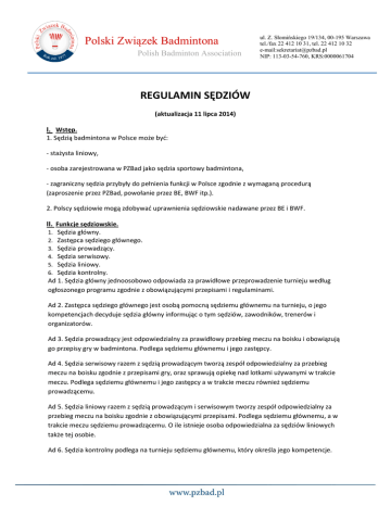 Polski Związek Badmintona REGULAMIN SĘDZIÓW