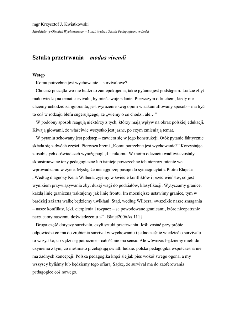 Kwiatkowski JK., {2007}, Survivalowe rozmyślania, W: