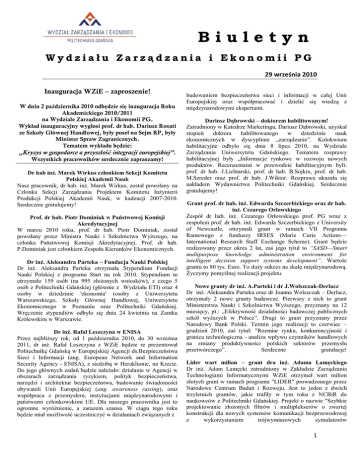 Biuletyn 29.09.2010 Redaktor dr Ewa Lechamn