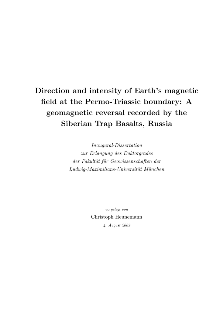 Feldumkehrung – Paläo- und gesteinsmagnetische Untersucungen an meso- und paläozoischen vulkanischen Gesteinen”
