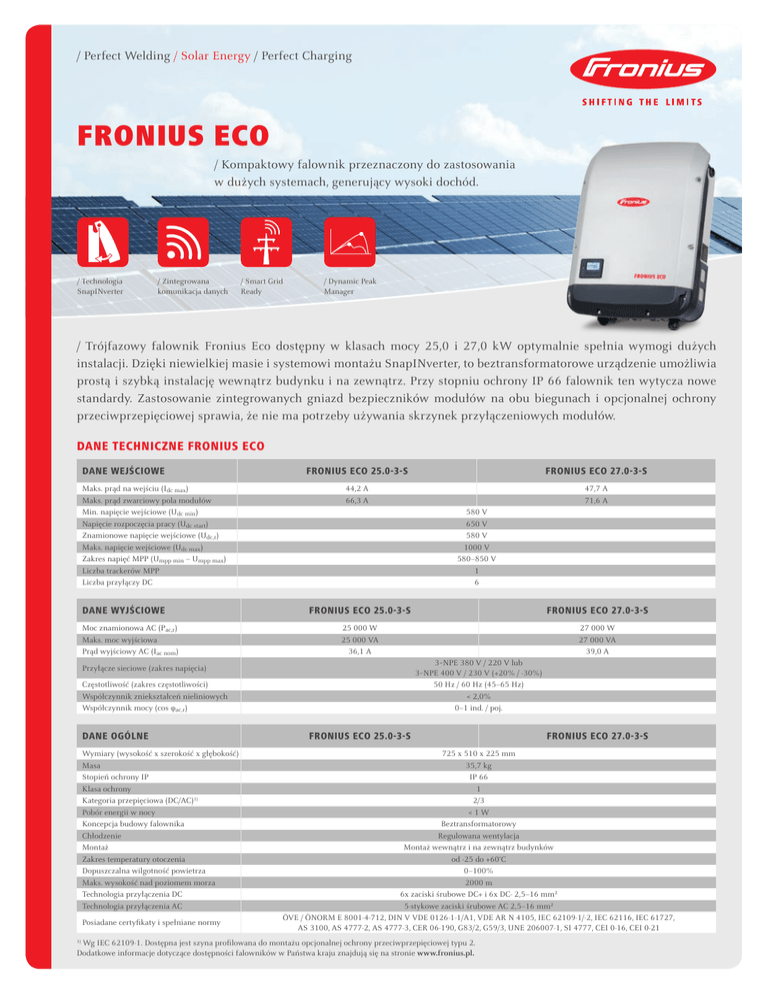 Fronius Eco – dane techniczne
