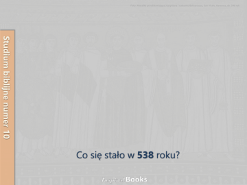 Foto: Mozaika przedstawiająca Justyniana i rzekomo Belisariusza, San Vitale, Ravenna, ok. 546 rok Studium biblijne numer 10 Co się stało w 538 roku? Niektórzy z studiujących proroctwa czasowe wysuwają spekulatywne twierdzenia, mające na celu odwrócenie uwagi innych od tego, co jest najistotniejsze dla zrozumienia tworzącej się kościelno-świeckiej potęgi obecnych czasów. Jednym z najbardziej atakowanych punktów jest pozycja, którą w systemie proroctw czasowych zajmuje 538 rok n.e. Celem tej prezentacji jest bardzo skrótowe ukazanie jednej z zasad interpretacji proroctw czasowych oraz zachęcenie do zastosowania jej w osobistym studium. Jaką rolę odgrywają daty w proroctwach czasowych? Udzielając odpowiedzi na to pytanie należy krótko nadmienić, że Bóg w Swojej mądrości nie podał proroctw w celu potwierdzenia historii zapisanej w annałach historii. Zarejestrowane w niej wydarzenia odpowiadają ludzkiemu spojrzeniu na wielkość, względnie upadek narodów i ich władców. Proroctwa czasowe określają wyłącznie granice czasu łaski i cierpliwości Bożej, do której historia, jako dyscyplina naukowa, nie ma żadnego odniesienia. Tak jest w przypadku wszystkich proroctw czasowych, wymienionych w Słowie Bożym. Ponadto przy interpretacji proroctw czasowych bardziej istotna jest znajomość zasad, którymi Bóg się kieruje względem narodów, grup i jednostek, jak wiedza o przeszłości. Historia jest jedynie instrumentem, pomagającym odnieść się do upływającego czasu i potwierdzić jej powtarzający się charakter. Jaka jest relacja 538 do 1798 roku? Zasadą, do której się odniesiemy, to początek ukazany przez koniec. Charakter utraty władzy nad Rzymem przez świeckiego i kościelnego władcę musi być taki sam. Ukazane jest również, jaki był udział mocarstwa świeckiego przy ustanowieniu władzy kościelnej. 1260 lat 538 1798 Wittiges, król Ostrogotów, władca świecki, oddaje w lutym 538 roku Rzym w ręce władzy kościelnej, której drogę utorował Belisariusz na rozkaz Justyniana* *Jakkolwiek Wittiges uciekł do Rawenny i przez jakiś czas oficjalnie panował jako król, z punktu widzenia proroctwa Rzym został mu odebrany, a jego panowanie tam zakończone. Odtąd jego władza malała. Generał Berthier, z rozkazu władcy świeckiego, Napoleona, wyrywa w lutym 1798 roku Rzym z rąk władzy kościelnej przez wysłanie papieża Piusa VI na banicję**. **Biblia informuje nas, że miało to być jedynie krótkotrwałą klęską Ta istotna zasada, że czas trwania proroctw wyznaczają wydarzenia ukazujące stanowisko Boże względem historii, nie jest wyraźnie dostrzegana. W typologicznym ujęciu ma ona wielkie znaczenie dla zrozumienia Bożego postępowania właśnie w czasie końca. Proroctwa są dla Jego ludu, a On nic nie czyni, chyba że objawi to Swoim sługom, prorokom. W celu zdobycia zaufania czytelnika podam dalsze zastosowanie tej zasady. 400 lat w Egipcie Józef* jest wyswobodzicielem i sprowadza rodzinę Jakuba do Egiptu. *W ujęciu typologicznym Józef i Mojżesz są typem Chrystusa. Mojżesz* jest wyswobodzicielem i wyprowadza rodzinę Jakuba z Egiptu