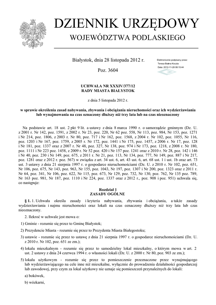 UCHWAŁA Nr XXXIV/377/12 RADY MIASTA BIAŁYSTOK z dnia 5