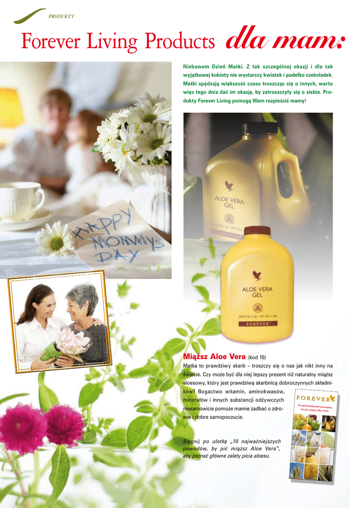 PRODUKTY Forever Living Products dla mam: Niebawem Dzieƒ Matki. Z tak szczególnej okazji i dla tak wyjàtkowej kobiety nie wystarczy kwiatek i pude∏ko czekoladek. Matki sp´dzajà wi´kszoÊç czasu troszczàc si´ o innych, warto wi´c tego dnia daç im okazj´, by zatroszczy∏y si´ o siebie. Produkty Forever Living pomogà Wam rozpieÊciç mamy! Mià˝sz Aloe Vera (kod 15) Matka to prawdziwy skarb – troszczy si´ o nas jak nikt inny na Êwiecie. Czy mo˝e byç dla niej lepszy prezent ni˝ naturalny mià˝sz aloesowy, który jest prawdziwà skarbnicà dobroczynnych sk∏adni , ków? Bogactwo witamin, aminokwasów, LheVgX^Zj`¨VYjdY edgcdÑX^dlZ\d 6adZKZgVhiVcdl ^cVijgVacZlheVgX ^Zj`¨VYjdYedgcd lVèj`¨VYdYedgcd ÑX^dlZ\d#Edc^Z" ÑX^dlnegVXj_ZWZ oegoZgln!WnX]gdc 6adZKZgV¼Yo^`^c ^cVhodg\Vc^ob! VijgVacnbh`¨VYc^` dbhinbjaj_|Xnbd YaVc^Z\dVghZcV¨Z YedgcdѼ_Zhi b!o`igZ\dbdèZ XoZgeVÎVbjc^X_ X_VB^|èhoj6adZK ¿#8dYo^ZccVedg" ZgVbdèZd`VoVh ^edbdX c|Y¨dc^|lnX^|\c j`¨VYjdYedgcdÑX ^i|Yd ^dlZ\d# B^YoncVgdYdl V GVYV CVj`dl V Yh# 6adZhj >ciZgcV HX^ZcXZ8djcX^a i^dcVa 6adZ ¼lh`gX^Z>6H8 iddg\Vc^oVX_VY WV_|XVdXonhidÑ ^ _V`dÑ VadZhj oVlVgiZ\d l egdYj`i VX] YdhiecnX] ^gZ`aVbj_|XnX] cV gnc`j h^edYVadZhdl nbhonaYZb# 8ZaZbegonÑl^Z XV_|XnbedlhiV c^jGVYn_Zhic^ Zina`dedejaVgn oVX_V VadZhj ^ egdlVYoZc^Z WVYV² " cVY i| gdÑa^c|! lngèc^Zc^Z ¼ VaZ glc^Zè edegoZo dYedl^ ZYc^ XZginÉ`Vi ¼ egdYj`il cV" egVlY VadZhdl nX]hedÑgYoVa Zljl^Zajlngd Wlheg oZYVlV" cnX] edY iV`^b ]Vh¨Zb! c^Z oVlhoZ ocV_Yj_|Xnb edil^Zg lgoZXon l^hidÑX YoZc^Z ^# minera∏ów i innych substancji od˝ywczych niesamowicie-pomo˝e mamie zadbaç o zdro EdbdXlYdWgnbig Vl^Zc^j OYgdln j`¨VY igVl^Zcc n id \lVgVcX_V! èZ hjWhiVcX_Z dYènlXo oVlVgiZ l cVhonb Z edènl^Zc^j h| egonhlV_ VcZ ^ igVchedg idlVcZ `gl^ddW^Z\j# 6adZ Yd KZgV bV cVijgVacZ l¨VÑX^ldÑX^ dXonhoXo GZ\jaVgcZ e^X^Z V_|XZ# B^|èhoj 6adZ KZgV bdèZ le¨nc| c^Z_hoZ [jc`X_dc cV hegVl" dlVc^Z _Za^i ^ Z[Z`inlc^Z_ho| VWhdgeX_ V _ZYcdXoZÑc^Z egdiZ^c! cV gZYj`X_ c^Zedè|Y VcnX] WV`iZg^^ lhonhi`didlcVij ^ YgdèYèn ¼ gVacnhedhW6adZ hYdl^Y¨iV`èZhl l¨V\dYoZc^jo\V\ d_Z_h`jiZXocdÑX^ ^^^ccnX]YdaZ\a^l dÑX^igVl^ZccnX]# wie i dobre samopoczucie. . Egonhe^ZhoZc^Z\d_Z B^|èho 6adZ KZgV lnilVg oVcn egoZo ;dgZkZg A^k^c\ e^Zglho nb lngdWZ EgdYjXi h Wn¨ b cV Ñl^ZX^Z! `igZbj GVYV XZginÉ`Vi# DY egonocV¨V hl_ &.-' g# oVX]dl j_Zbn egVld Yd jb^ZhoXoVc^V E^ZXoX^6egdWV in>6H8cVhld ^X]egdYj`iVX]! `ignX]\¨lcn h`¨VYc^`^Zb _Zhi b Xonhin! cVijgVac ^Z hiVW^a^odlVcn b^|èho 6adZ KZgV# c^V 6adZ KZgV lhe^ZgV Yo^V¨Vc^Z [^WgdWaVh il# ;^WgdWaVhin `dbg`^dYedl^ZY id iZ c^Zoln`¨Z o^VacZoVedlhiVl Vc^Z`daV\Zcj#7^d l¨V\dYoZc^jYgdW g|dcZiV` èZjYo^V¨ cnX]deVgoZ²!h`V aZXoZ²!diVg^edY gVèc^Z²h`gn# Si´gnij po &%ulotk´ „10 najwa˝niejszych powodów, by piç mià˝sz Aloe Vera”, aby poznaç g∏ówne zalety picia aloesu. OYgdl^Z^]^\^ZcVYZ cinhinXocV 6adZ KZgV bV Yo^V¨Vc^Z `dgonhicZ YaV oYgdl^V _Vbn jhicZ_ ^ Yo^|hZ¨# EVb^iV_dinbeg oncVhiecZ_l^onX ^ZjYZci nhin ?V`l^YVoedlnè honX] &%Ydh`dcV¨nX]edl dYl! B^|èho6adZKZgV e^inXdYo^Zcc^Z¼hV bajWob^ZhoVcn o;dgZkZgEdbZhiZ ZcEdlZg ¼_Zhi_ZYcnbocV_a ZehonX] hjeaZbZcilY^ZiZi nXocnX] OVeniV_iV`èZdc VijgVacZegdYj`in e^Za\cVXn_cZcV WVo^Z6adZKZgV# Il_YnhignWjidg ;dgZkZg ;DG:K:GA>K>C<E GD9J8IHEDA6C 9 LhoZa`^ZegVlVoVhig 12 oZèdcZ August 2006 | Issue 65 EdaVcY &%cV_lVèc^Z_hon X]e>ciZgcV dldi^dcVa Yl! Wne^b^|èho6ad ZKZgV prezenty, które pieszcza˛ Aloe Lips (kod 22) Usta mamy majà co robiç – czy ca∏uje ona na do widzenia dzieci wychodzàce do szko∏y, czy koi ból skaleczonego paluszka. Jednak ostra pogoda, promienie s∏oneczne i zanieczyszczenia odbijajà si´ negatywnie na delikatnej skórze ust. Sprezentuj mamie Aloe Lips, aby jej usta pozosta∏y w formie do ca∏owania. Naturalne sk∏adniki, takie jak aloes, jojoba i wosk pszczeli, sprawiajà, ˝e receptura Aloe Lips ma silne w∏aÊciwoÊci nawil˝ajàce, które pomagajà zadbaç o pi´kny wyglàd ust. Forever Alluring Eyes (kod 233) Oczy mamy rzadko odpoczywajà: ca∏y czas uwa˝a ona na swojà rodzin´. Forever Alluring Eyes to doskona∏y prezent dla mamy, poniewa˝ pomo˝e jej odm∏odziç spojrzenie, wyg∏adzajàc zmarszczki i niwelujàc cienie pod oczami wywo∏ane d∏ugotrwa∏ym dbaniem o innych. Skomponowany z mià˝szu aloesowego i innych lekkich, naturalnych emolientów, Forever Alluring Eyes nawil˝a nie pozostawiajàc uczucia „t∏ustoÊci”, jakie mo˝e towarzyszyç innym kremom do piel´gnacji oczu. Wzbogacony witaminà E, sprawi, ˝e oczy mamy b´dà rozeÊmiane nie tylko w dniu jej Êwi´ta. Forever Aloe Scrub (kod 238) Znacie mamy, które sà tak zaj´te, ˝e nawet zwyk∏e umycie twarzy odsuwajà na dalszy plan? Zach´ç mam´, by Alpha-E Factor (kod 187) cieszy∏a si´ drobnymi przyjemnoÊciami, kupujàc jej ten Matki lubià wydawaç pieniàdze na cz∏onków swojej ro- naturalny preparat oczyszczajàcy. Forever Aloe Scrub dziny. Czemu w tym miesiàcu nie podarowaç mamie bo- jest wystarczajàco delikatny, by u˝ywaç go na co dzieƒ, gatej, pot´˝nej od˝ywki, dzi´ki której poczuje si´ m∏odziej dlatego mama mo˝e si´ cieszyç minizabiegiem spa, de- i tak te˝ b´dzie wyglàdaç? Forever Alpha-E Factor likatnie wmasowujàc mià˝sz Aloe Vera i olejek jojoba zwi´ksza elastycznoÊç skóry dzi´ki zawartoÊci unikalnych w skór´ ka˝dego ranka lub wieczora. sk∏adników, takich jak witaminy A i C. Zawiera równie˝ antyutleniacze i emolienty, które nawil˝ ajà skór´ od Forever Marine Mask (kod 234) Êrodka, normalizujàc i równowa˝àc nawet suchà i wra˝liwà cer´. Wzbogacenie codziennej piel´gnacji cery zaledwie kilkoma kropla- W tym roku podaruj mamie dar piel´gnacji. Forever mi Alpha-E Factor sprawi, ˝e mama b´dzie wypos a˝ona Marine Mask to bogata kompozycja g∏´boko oczysz w doskona∏à broƒ do walki z negatywnym dzia∏aniem wolnych czajàcych sk∏adników, które pomagajà skórze odzyskaç rodników. równowag´, jednoczeÊnie