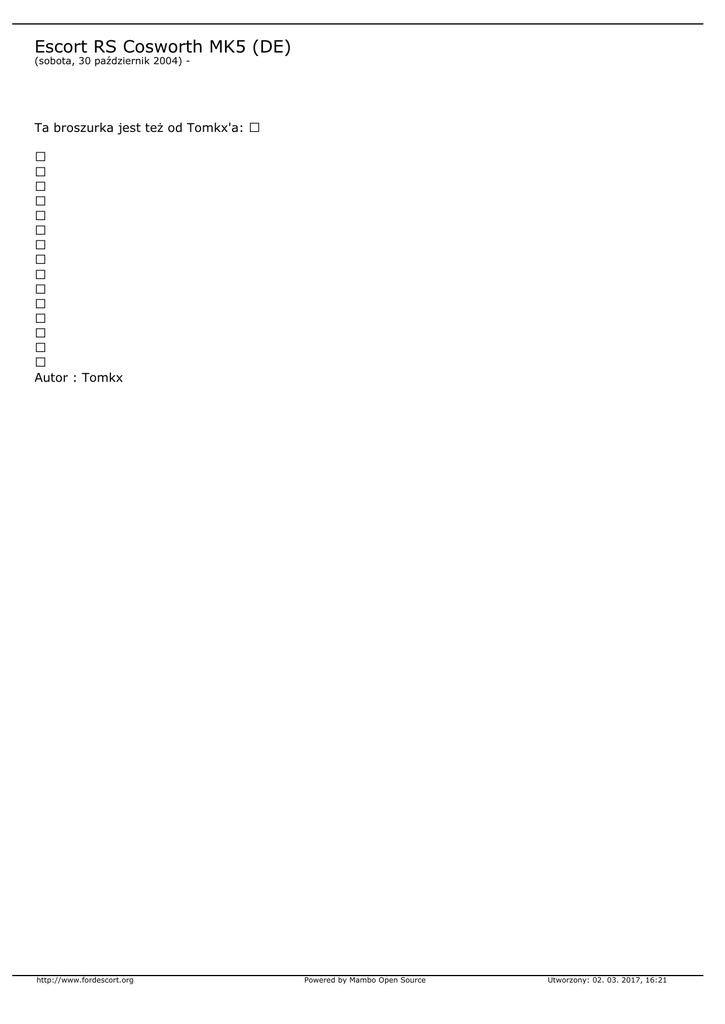 Escort RS Cosworth MK5 (DE) (sobota, 30 październik 2004) - Ta broszurka jest też od Tomkx'a: Autor : Tomkx http://www.fordescort.org Powered by Mambo Open Source Utworzony: 02. 03. 2017, 16:21