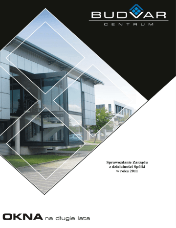 Sprawozdanie Zarządu z działalności Spółki w roku 2011 Raport roczny 2011 Spis treści 1. INFORMACJE OGÓLNE -32. ZAGADNIENIA KORPORACYJNE -42.1. Rejestracja Spółki -42.2. Kapitał akcyjn y Spółki -42.3. Organ y Spółki -42.3.1. Walne Zgromadzenie Akcjonariuszy -42.3.2. Rada Nadzorcza -52.3.3. Zarząd Spółki -52.3.4. Prokurenci -62.3.5. W ynagrodzenia dla osób zarządzających i nadzorujących -62.3.6. Umowy zawarte pomiędz y Spółką a osobami zarządzającymi -63. AKCJONARIAT -73.1. Struktura akcjonariatu -73.2. Zmian y w strukturze własności znaczn ych pakietów akcji -73.3. Akcje w posiadaniu osób zarządzających i nadzorujących -73.4. Znaczący akcjonariusze -73.5. Wskazanie wszelkich ograniczeń dotyczących przenoszenia prawa własności papierów wartościowych Spółki oraz wszelkich ograniczeń w zakresie wykon ywania prawa głosu przypadających na akcje Spółki. - 7 3.6. Umowy zawarte po dniu bilansowym, w wyniku których mogą w prz yszłości nastąpić zmian y w proporcjach posiadan ych akcji przez dot ychczasowych akcjonariusz y -83.7. S ystem kontroli programów akcji pracownicz ych -8-94. DZIAŁALNOŚĆ BUDVAR CENTRUM SA W ROKU 2011 4.1. Ocena cz ynników ryz yka i zagrożeń dla BUDVAR Centrum SA -94.2. Zakres działalności BUDVAR Centrum SA - 11 4.3. Informacja o podstawowych produktach - 12 4.4. Główne rynki prowadzonej działalności - 13 - 16 4.5. Struktura sprzedaż y w podziale na główne produkt y 4.5. Uzależnienie Spółki od dostawców - 17 5. ANALIZA FINANSOWA BUDVAR CENTRUM SA - 19 5.1. S ytuacja finansowa i omówienie wyniku operacyjnego - 19 5.1.1. Analiza rentowności. - 19 5.1.2. Analiza struktury akt ywów. - 20 5.1.3. Analiza rotacji. - 21 5.1.4. Koszt y według rodzaju - 21 5.2. Zasob y kapitałowe. - 22 5.2.1. Źródła kapitału Spółki. - 22 5.2.2. Wskaźniki pł ynności - 23 5.2.3. Źródła, kwot y oraz opis przepł ywów środków pieniężn ych Spółki - 24 5.2.4. Potrzeb y kredytowe oraz struktura finansowania Spółki - 24 5.3. Sfera działalności inwest yc yjnej - 24 5.3.1. Nakład y inwestyc yjne poniesione w 2011 roku na niefinansowe akt ywa trwałe - 25 5.4. Kred yt y, umowy poż yczek, poręczenia i gwarancje - 25 5.5. Zarządzanie zasobami finansowymi - 25 - 26 5.6. Możliwości realizacji zamierzeń inwest ycyjn ych 5.7. Cz ynniki nadzwyczajne, które miał y wpł yw na działalność podstawową oraz główne rynki prowadzonej działalności. - 26 -1- Raport roczny 2011 5.8. Wskazanie cz yn ników, które w ocenie emitenta będą miały wpł yw na osiągnięte przez niego wyniki w perspektywie co najmniej kolejnego kwartału. - 26 6. UMOWY I WYDARZENIA ZNACZĄCE DLA DZIAŁALNOŚCI GOSPODARCZEJ - 27 6.1. Zarządzanie jakością - 27 6.2. Istotne umowy - 28 - 30 6.4. Zmian y w powiązaniach organizacyjnych lub kapitałowych 6.5. Transakcje z podmiotami powiązan ymi - 30 6.6. Zmian y w podstawowych zasadach zarządzania Spółką - 30 6.7. Emisja akcji - 30 6.8. Różnice w stosunku do ostatnio publikowanej prognoz y - 30 6.9. Istotne cz ynniki oraz perspekt ywy rozwoju, osiągnięcia w dziedzinie badań i rozwoju. - 31 6.10. Postępowania toczące się przed sądem, organem właściwym dla postępowania arbitrażowego lub organem administracji publicznej. - 31 6.11. Zawarcie umowy z podmiotem uprawnion ym do badania sprawozdań finansowych. - 32 - -2- Raport roczny 2011 1. INFORMACJE OGÓLNE NAZWA BUDVAR Centrum Spółka Akcyjna FORMA PRAWNA Spółka Akcyjna SIEDZIBA ADRES Zduńska Wola 98-220 Zduńska Wola, ul. Przemysłowa 36 TELEFON (0-43) 824 31 32 TELEFAX (0-43) 824 31 33 POCZTA ELEKTRONICZNA [email protected] STRONA INTERNETOWA www.budvar.pl REGON 730353650 NIP 829-16-35-137 KRS 0000143579 SEKTOR budownictwo Akcje BUDVAR Centrum Spółki Akcyjnej notowane są na Giełdzie Papierów Wartościowych w Warszawie S.A. od 28 maja 2007 roku. -3- Raport roczny 2011 2. ZAGADNIENIA KORPORACYJNE 2.1. Rejestracja Spółki Akt założycielski BUDVAR Centrum Spółki Akcyjnej, zwanej dalej „Spółką” został podpisany w dniu 15 listopada 1996 roku. Pierwotnie Spółka została zarejestrowana w Sądzie Rejonowym w Sieradzu pod numerem RHB 845 - postanowienie Sądu Rejonowego w Sieradzu z dnia 24 marca 1997 roku. W dniu 16 grudnia 2002 roku Spółka została wpisana pod numerem KRS 0000143579 do rejestru przedsiębiorców Krajowego Rejestru Sądowego prowadzonego przez Sąd Rejonowy dla Łodzi – Śródmieścia w Łodzi, XX Wydział Krajowego Rejestru Sądowego. 2.2. Kapitał akcyjny Spółki Kapitał zakładowy Spółki wynosi 9.895.600,00 (dziewięć milionów osiemset dziewięćdziesiąt pięć tysięcy sześćset) złotych i dzieli się na: 1) 100.000 (słownie: sto tysięcy) akcji zwykłych na okaziciela serii A o numerach od A 0000001 do A 0100000, o wartości nominalnej 1 (słownie: jeden) złoty każda, 2) 150.000 (słownie: sto pięćdziesiąt tysięcy) akcji zwykłych na okaziciela serii B o numerach od B 0000001 do B 0150000, o wartości nominalnej 1 (słownie: jeden) złoty każda, 3) 8.045.600 (słownie: osiem milionów czterdzieści pięć tysięcy sześćset) akcji zwykłych na okaziciela serii C o numerach od C 0000001 do C 8045600, o wartości nominalnej 1 (słownie: jeden) złoty każda. 4) 1.600.000 (słownie: jeden milion sześćset tysięcy) akcji zwykłych na okaziciela serii D o numerach D 0000001 do D 16000000 o wartości nominalnej 1 (słownie: jeden) złoty każda. 2.3. Organy Spółki Organami Spółki są: Walne Zgromadzenie Akcjonariuszy, Rada Nadzorcza, Zarząd. 2.3.1. Walne Zgromadzenie Akcjonariuszy Zwyczajne Walne Zgromadzenie Akcjonariuszy BUDVAR Centrum SA odbyło się w dniu 9 maja 2011 roku i podjęło uchwały o: zatwierdzeniu sprawozdania Zarządu z działalności Spółki w roku 2010 oraz sprawozdania Rady Nadzorczej z działalności za rok 2010, zatwierdzeniu sprawozdania finansowego Spółki za rok 2010, podziale zysku za rok 2010, udzieleniu absolutorium członkom org